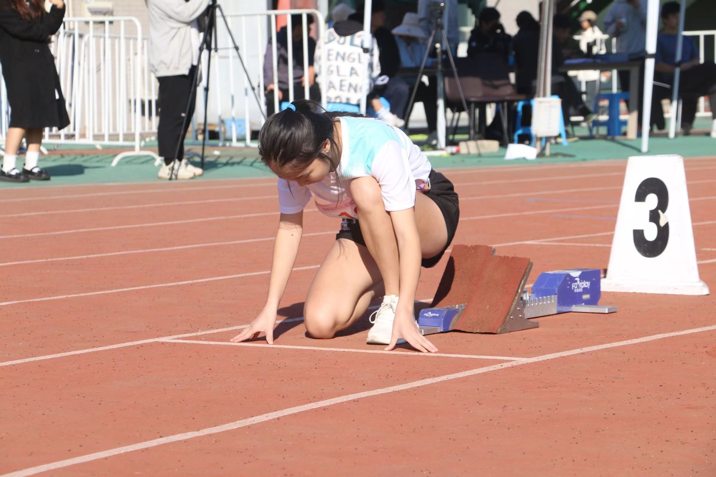图为女子400米决赛参赛选手杨珺乔同学起跑场景