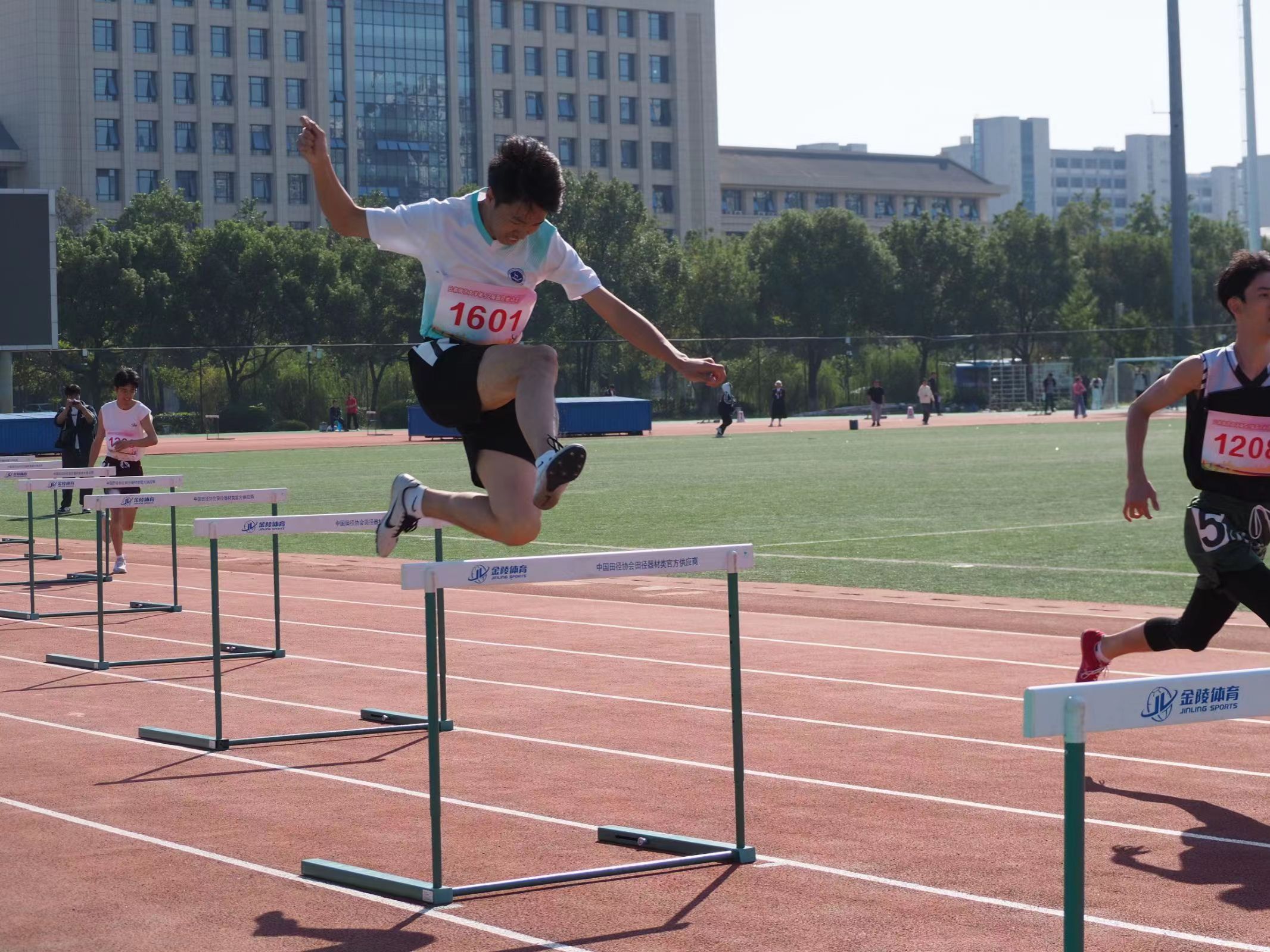 图为男子400米栏决赛王梓涵选手跨栏瞬间画面