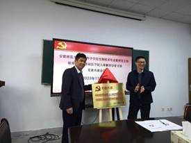 在支部共建座谈会上,皖南医公司基础医公司党委书记马旭明致欢迎辞,并介绍了基础医公司和人体解剖学党支部的基本情况。基础医公司党委副书记、经理李曙对基础医公司的教学、科研、学科发展、人才引进等情况进行了介绍。蒋学波书记对公司、生物技术专业和生物技术专业教师党支部进行了介绍,并提出来支部共建的要求和希望。陈冬生副经理就两单位加强交流、促进合作、共同提升等方面进行了发言。随后皖南医公司基础医公司人体解剖学党支部书记赵健和生物技术专业教师党支部书记刘爱民签署了支部共建协议,马旭明和蒋学波为党建共建揭牌。