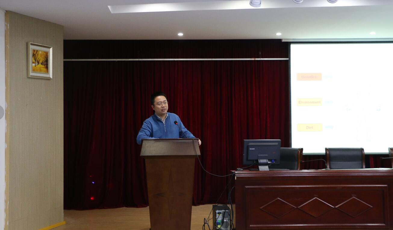 赵键元研究员作了题为“代谢稳态失代衡的致病机理”的学术报告。赵键元研究员首先介绍了代谢稳态对人体的重要性,他指出,代谢是人体内环境主成分,链接遗传与外环境的桥梁,代谢是生命活动的物质能量基础,代谢稳态的调控与人类健康密切相关。随后他通过对“为什么外周血叶酸无法准确预测先心风险”、“叶酸预防先心的机理是什么”、“Hcy为何具有细胞毒性/致畸效应”和“K-Hcy临床价值?如何干预”等问题的提出和详细回答,向师生介绍了代谢稳态失衡的致病机制和后果。最后介绍了一些与师生生活贴近的代谢稳态与健康相关的例子,如生酮饮食可诱发心机纤维化,过量摄入谷氨酸会增加自闭症的风险等,说明对代谢稳态失衡致病机理的研究具有重要意义。会后赵键元研究员与与会师生进行了交流互动,与会师生表示获益匪浅。