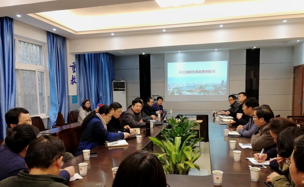 2018年3月9日下午,应生科院邀请,芜湖市科技局局长杨少华在公司会议室做了题为《科技创新发展趋势和政策》的报告会,公司相关专业的教师聆听了报告。报告会由经理吴孝兵主持。