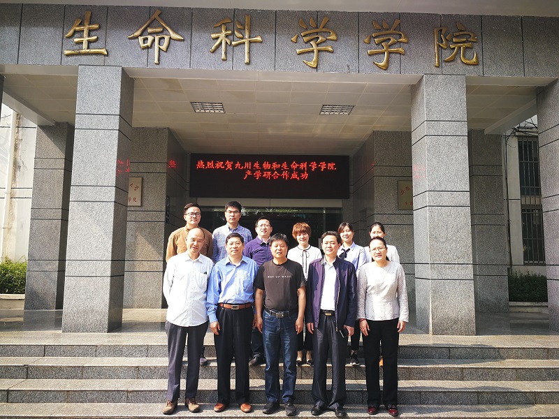 双方签订产学研合作协议后,韩国祥代表九川生物捐助爱心基金30000元,公司经理吴孝兵、副经理朱国萍与韩国祥共同为产学研合作基地、教育实践基地揭牌。
