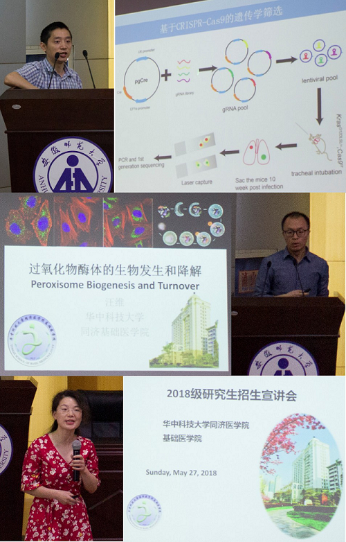 汪维教授主要从事过氧化物酶体的生物发生、细胞自噬及囊泡运输方向的研究。汪老师做了“过氧化物酶体的生物发生和降解”的学术报告,系统阐述了过氧化物酶体(Peroxisome),一种较晚发现的细胞器,其发生、发育及其通过细胞自噬走向降解的过程,同时还介绍了过氧化物酶体缺失所导致的人类疾病如Cerebro-Hepato-Renal综合征的一些病例情况。最后,汪老师向在座的学子发出诚挚邀请,希望有兴趣的同学加盟其科研团队。