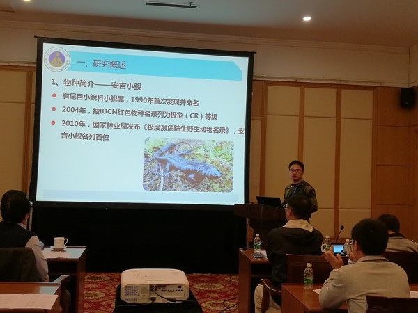 以中国动物学会两栖爬行动物学分会常务理事吴孝兵教授、副主任委员聂刘旺教授和晏鹏副教授为代表的m88官方网站登录地址两爬科研团队一行共12人应邀参加了本次研讨会。以扬子鳄、龟鳖类和凹耳蛙等为代表的保护生物学及分子系统学研究一直是公司的特色科研方向,已获多项国家自然科学基金、教育部博士点专项基金等省部级项目资助,在国内外都有着较好的学术影响力。会议上,吴孝兵教授和聂刘旺教授分别主持了2个分会场报告,博士研究生汪焕和硕士研究生王明胜先后做了《Multiple paternity:a compensation mechanism of the Chinese alligator for inbreeding》、《安徽省清凉峰国家级自然保护区安吉小鲵栖息地特征分析》的大会分组报告。