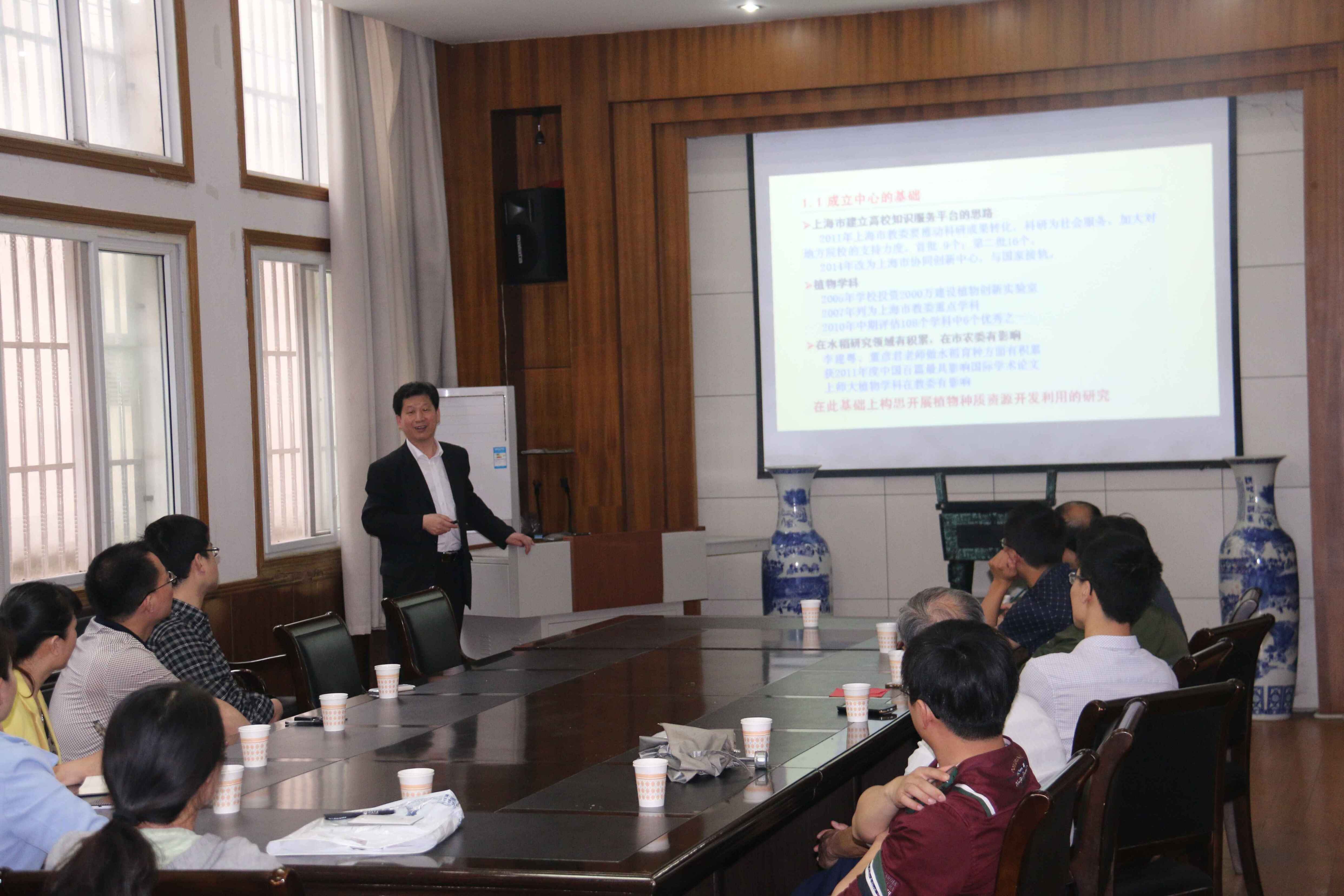 王全喜教授报告的题目是《植物种质资源开发利用》。报告中,王全喜教授首先向大家介绍了上海师范老员工命与环境科学公司的学科专业设置和公司产品情况。接着王教授介绍了国内植物种质资源的现状,并以功能稻米和无农药绿叶菜的研究推广为实践案例,分别从项目背景、基地建设、人才队伍建设、科研与社会服务成果等方面进行了详细介绍。与会教师和同学表示深受启迪和鼓舞,期间与王教授进行了热烈讨论和交流。通过本次报告会,拓宽了公司师生的学术视野,激励了全院师生积极投身专业学习和科学研究,同时也对高校间的科研合作起到了推进作用。