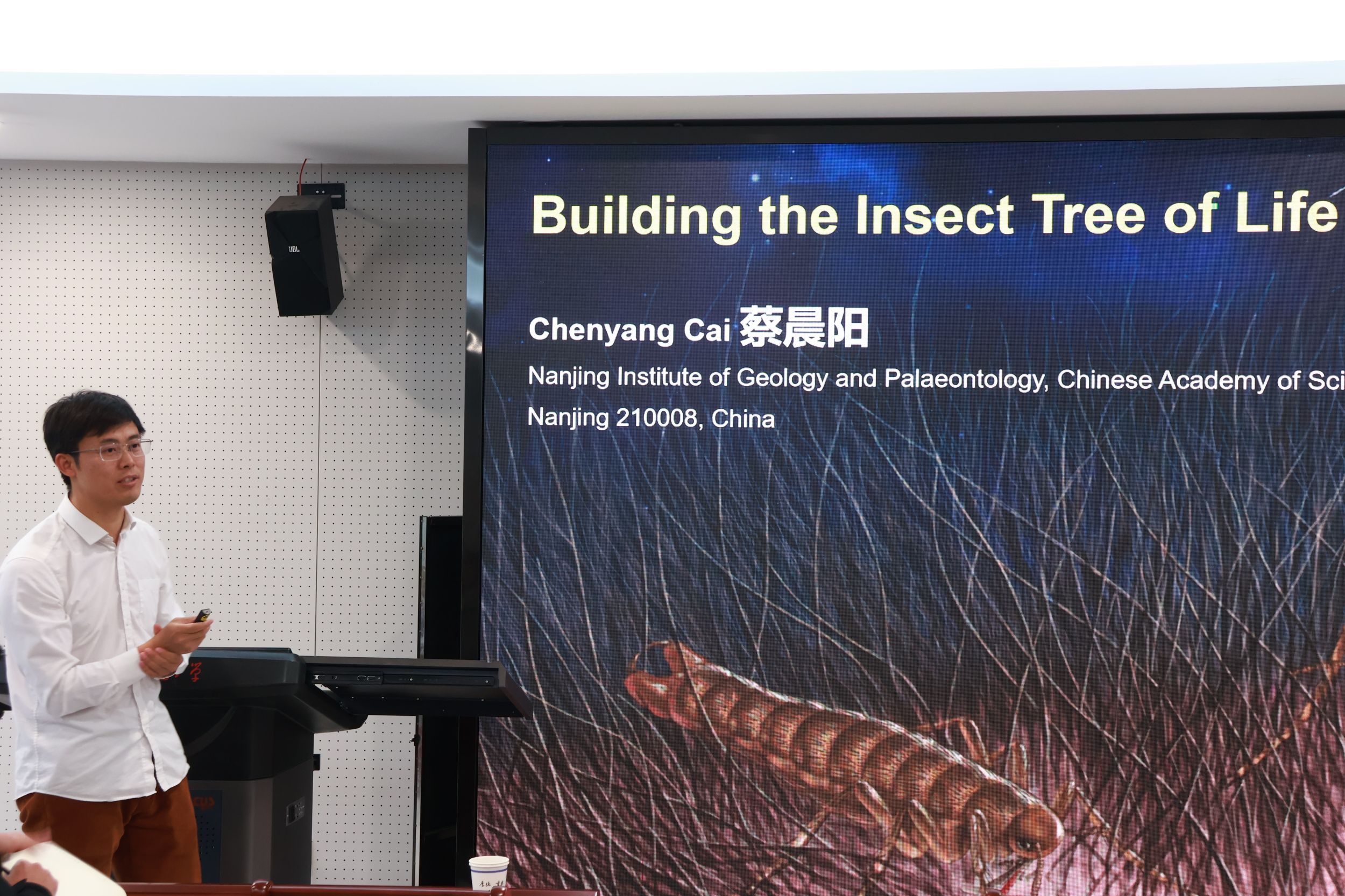 蔡晨阳研究员以《构建昆虫生命之树》为报告主题,以生物多样性研究的重要性和各种昆虫化石材料的展示为引入,系统介绍了整合分子、形态和化石数据的相关分析技术,重点阐述了利用单拷贝基因序列来重建昆虫生命之树的常用方法和研究意义,并向我们展示了甲虫、被子植物、裸子植物、蕨类植物以及鸟类的进化图谱。此外,报告还指出构建分子系统树必须考虑所用序列的异质性和分析模型,化石材料所提供的时间校准信息对构建昆虫演化的时间树具有至关重要的作用。