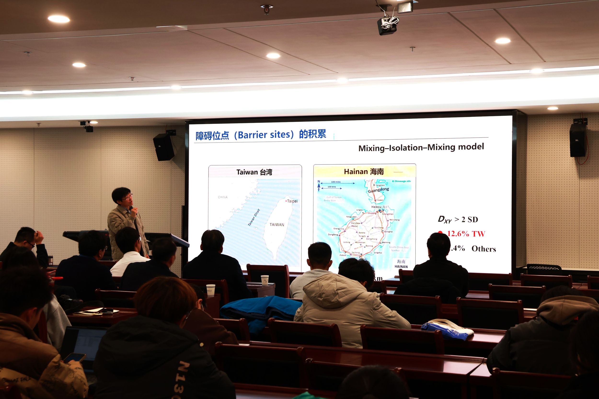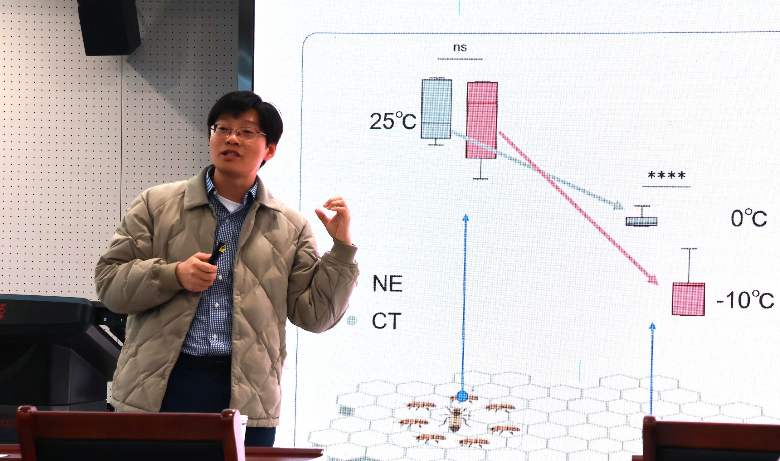 刘山林研究员以“东方蜜蜂的遗传多样性和保护”为主题,围绕传粉昆虫多样性演化相关的若干核心问题,分别从蜜蜂属物种的分类、地理分布、遗传结构和物种多样性形成机制等方面系统介绍了团队的系列研究成果。他还详细讲解了利用博物馆标本和单链DNA建库技术,分别基于线粒体基因和核基因序列来解析东方蜜蜂的分子系统发育关系及其种群结构的相关研究结果,并强调与当代样本相比,历史样本具有更高的遗传多样性。报告中,刘山林研究员还结合已有的系列研究成果分别探讨了变异促进寒冷环境生存的理生化机制、东方蜜蜂应对选择压力的快速演化机制、中西蜂温带适应及肠道微生物协同演化机制等,并结合当前有关中西蜂气候适应的演化机制、蜜蜂传粉网络及其生态价值评估等热点问题,指出了后期值得深入研究的诸多内容。