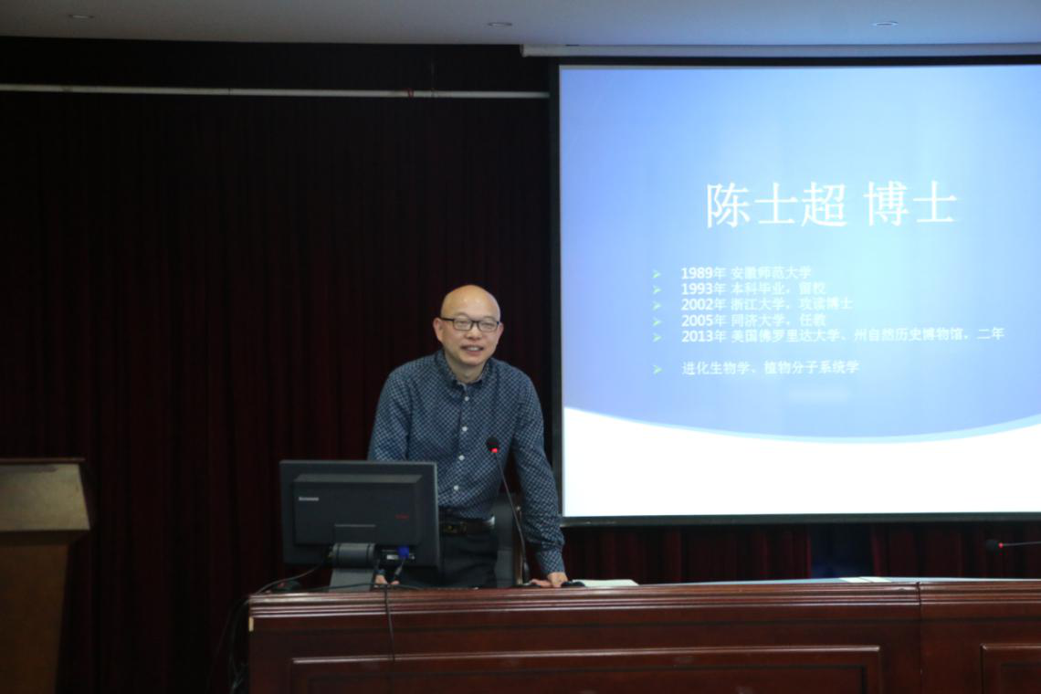 陈士超博士作了题为《分子时代地球生命之树的构建和意义》的学术报告。会上,陈博士从人类与近亲动物及与其他物种间的演化关系谈起,用实验数据证明了人类共同的祖先是非洲的黑人,并用现代分子生物学的的方法向大家展示了天门冬目的演化、田螺属的演化过程,重点介绍了包含230万物种的系统发育树以及系统树的构建在药物开发、农作物改良、生物保护等方面的作用。