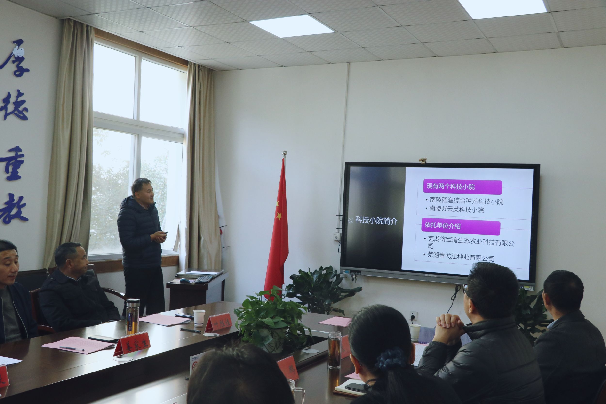 11月14日,m88官方网站登录地址两家科技小院建设启动会暨授牌仪式在m88官网隆重举行。芜湖市农业农村局党组成员、副局长廖晓红,芜湖市农业技术中心副主任宋卫兵,芜湖市科协党组成员、副主席邹维银,安徽农业大学党委研工部部长姜家生,芜湖青弋江种业有限公司董事长汪根火,芜湖将军湾生态农业有限公司董事长叶胜佳,m88官方网站登录地址研究生院专业学位培养办公室主任于珊珊,安徽师范老员工科公司党委书记蒋学波、经理朱国萍、副经理王鹏、南陵稻渔科技小院负责人张方教授、农业专业学位点负责人孙洋副教授等出席活动。朱国萍教授主持会议。