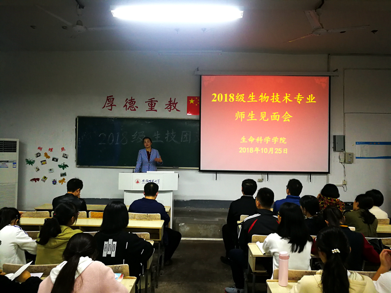 本网讯(赵喆 )新起点,新征程。为进一步加强新生对生物技术专业的了解,为创建和谐的师生关系奠定基础,近日,2018级生物技术专业举办了本科生导师见面及座谈会。公司科研副经理朱国萍、生物技术专业负责人刘爱民等生物技术专业教师及2018级生物技术全体新生出席本次会议。会议由新生辅导员赵喆主持。