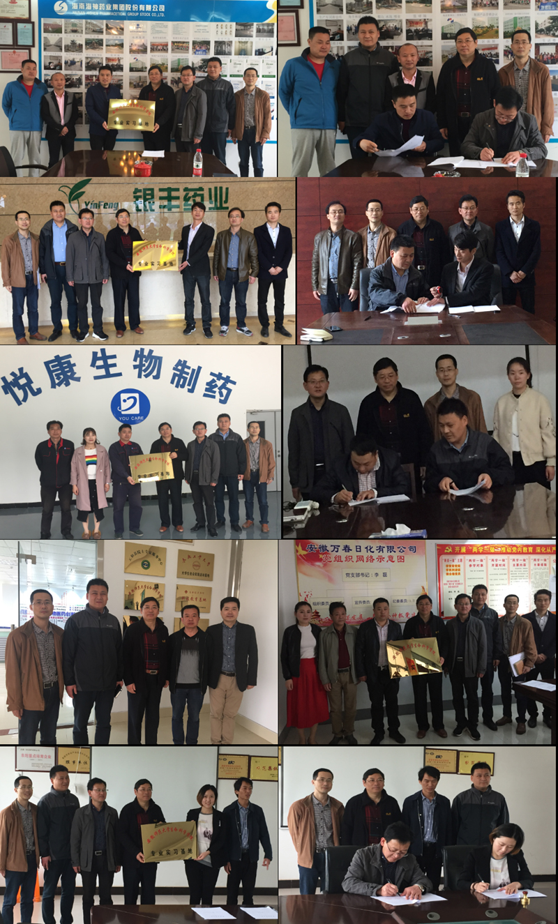 2018年3月30日安师大生科院一行五人,远赴阜阳太和的制药公司等六个单位进行了专业实习基地洽谈、实习协议签署和实践教学基地挂牌等活动。本次活动由生科院吴孝兵经理带队,党委副书记刘振杰、教学副经理胡好远、生物制药专业负责人陈冬生和公司办公室主任陈九保等老师一同前往。