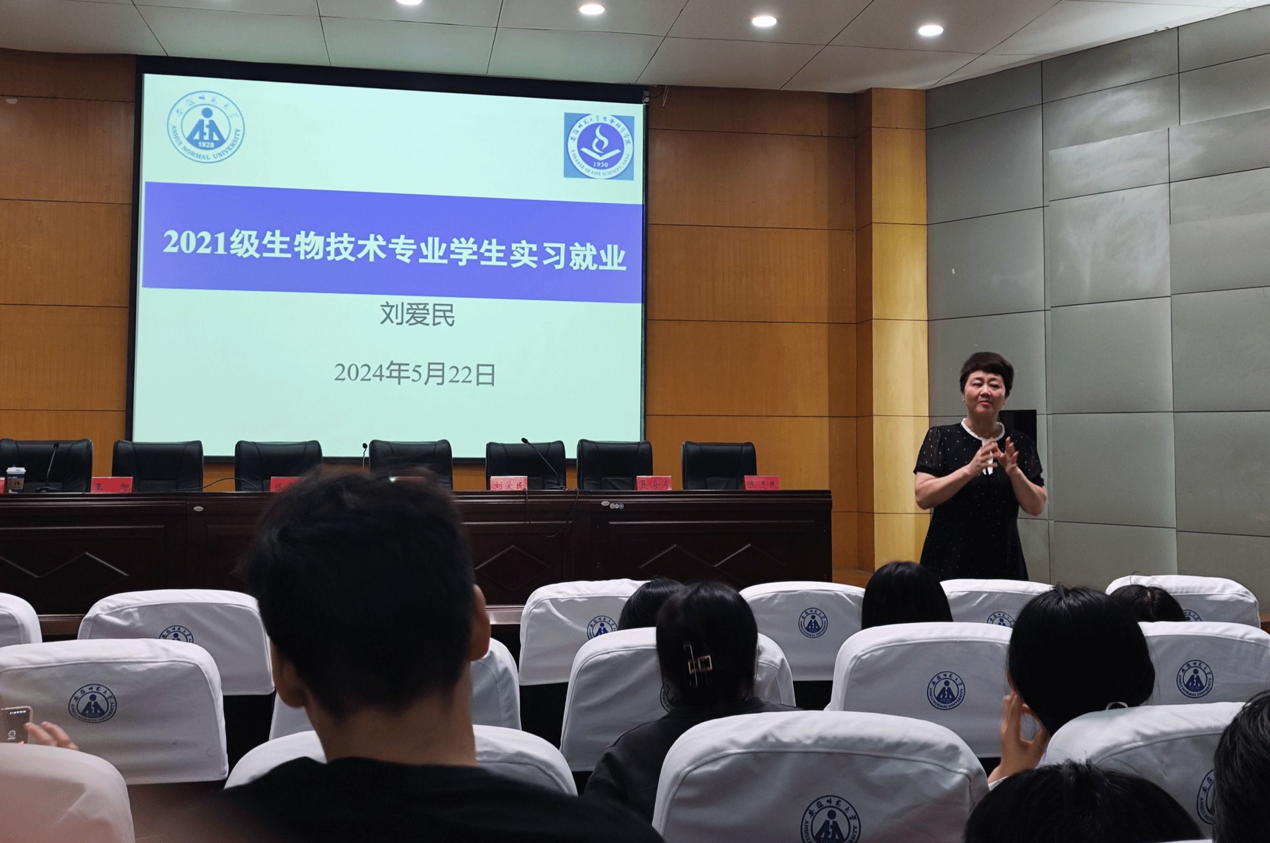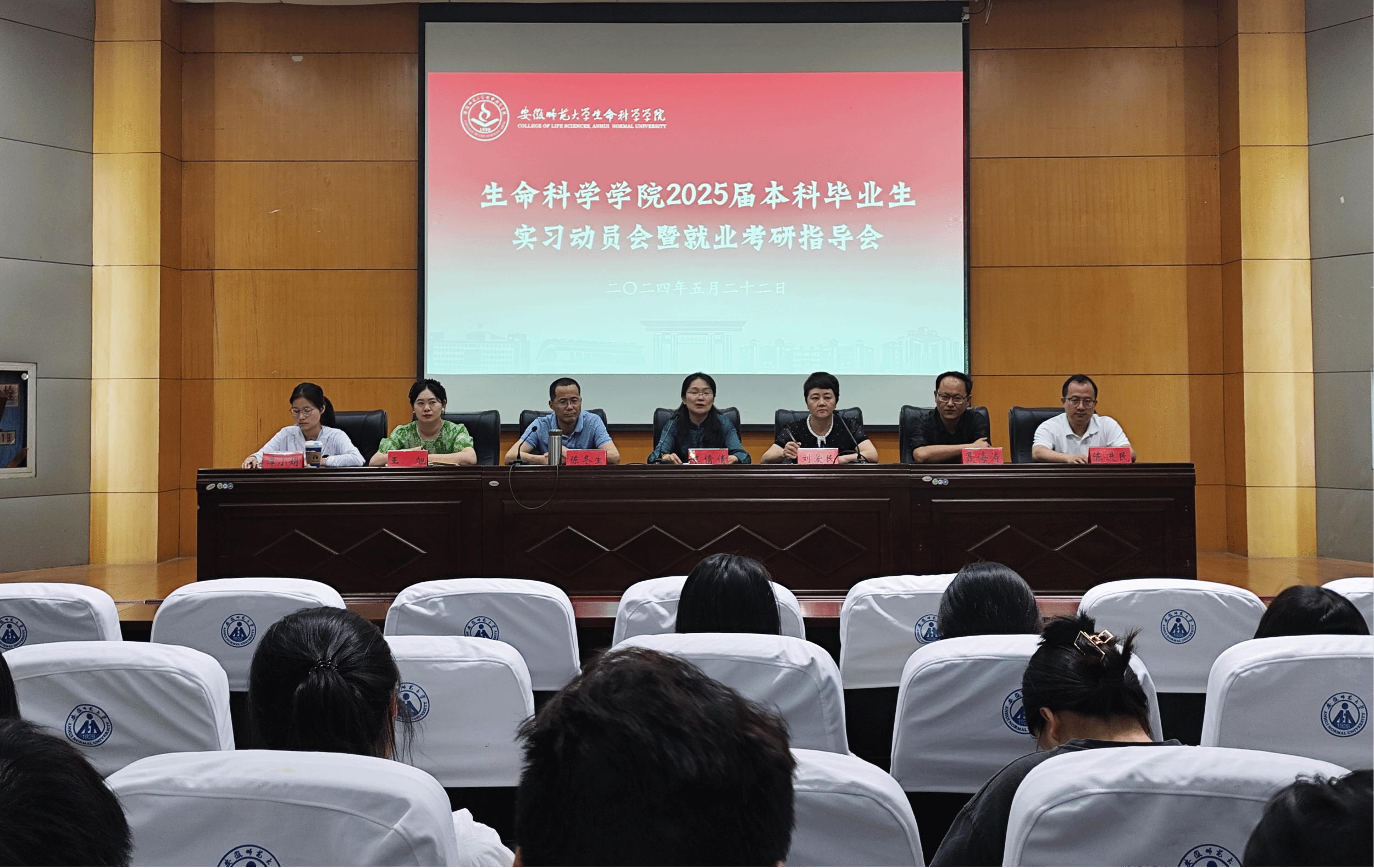 5月22日下午,m88官网在赭山校区田楼报告厅召开2021级生物技术专业本科毕业生实习动员暨就业考研指导会。此次会议旨在为即将实习的同学们提供指导,确保他们能够顺利、安全地完成实习任务,为未来就业或考研之路打下坚实的基础。公司副书记汪倩倩、副经理陈冬生,专业负责人刘爱民、王旭,班主任谭小娟、聂海涛、陈进民,辅导员赵航等出席会议,2021级生物技术专业(含拔尖班)全体员工参会。会议由刘爱民主持。