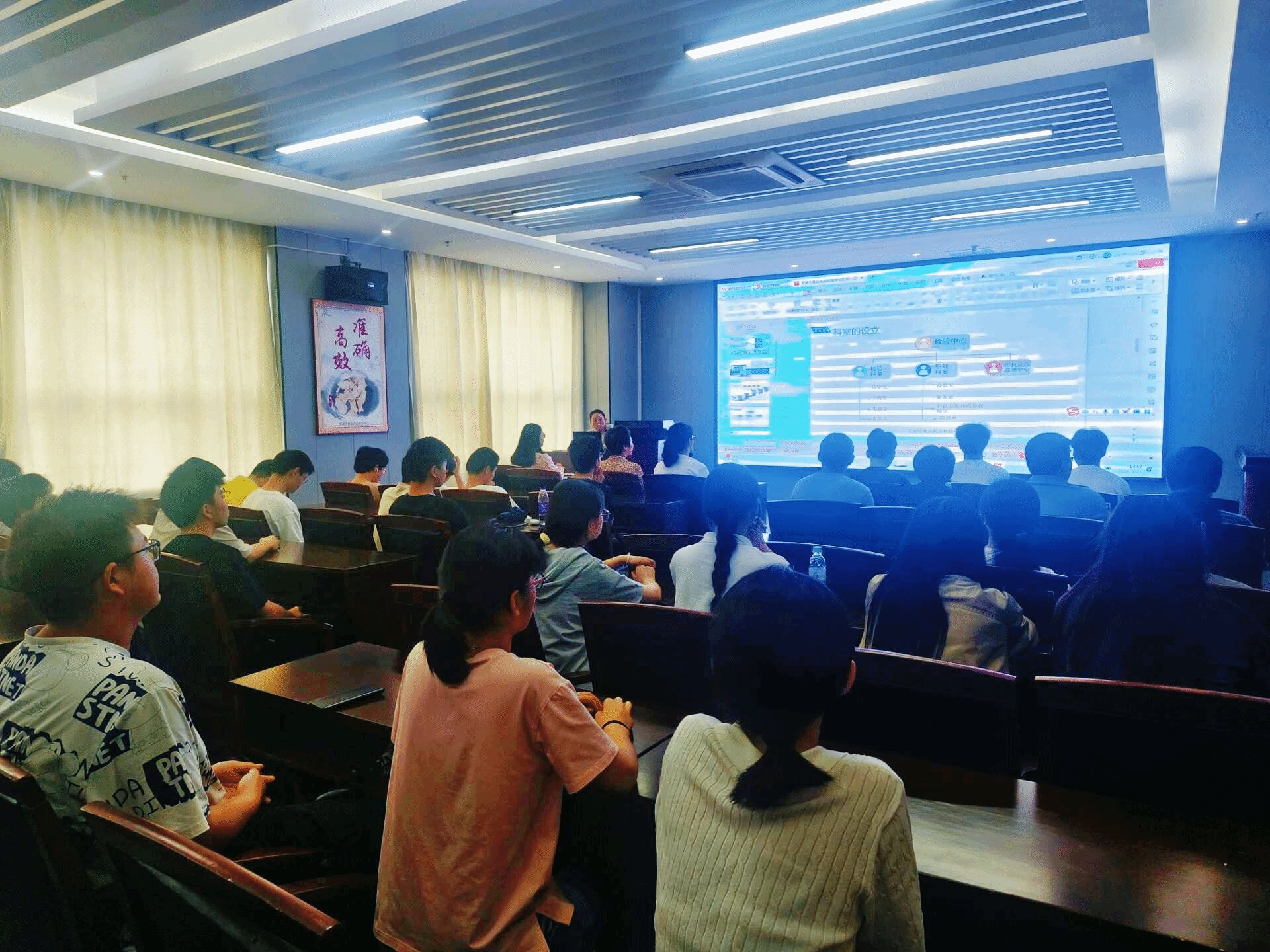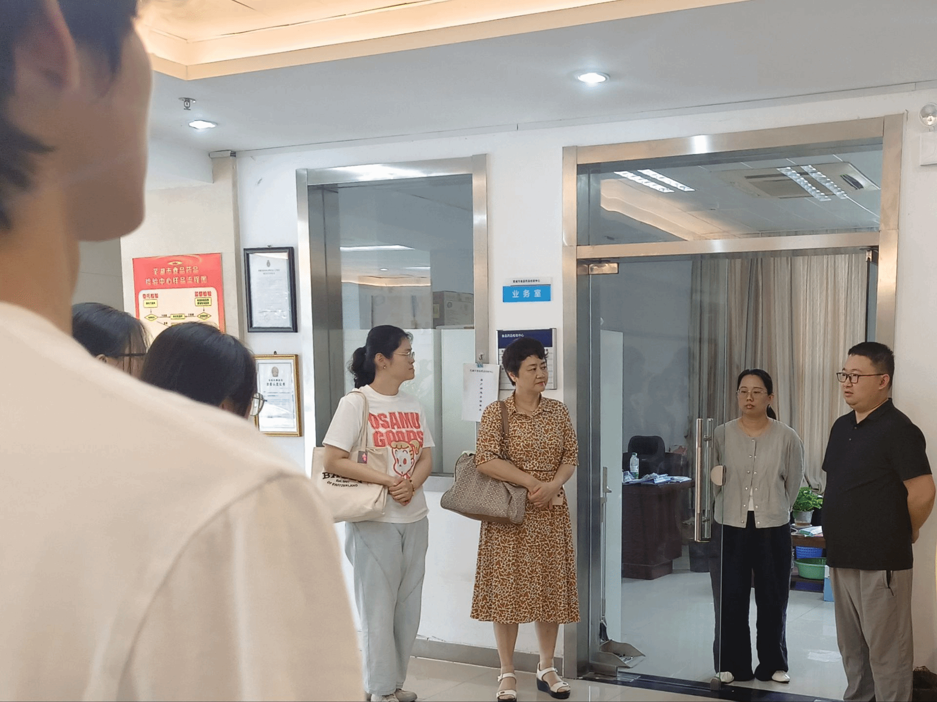 进入检验中心,中心负责人张主任首先向同学们介绍了检验中心概况,涉及历史沿革、人员、科室的设立、工作职能等方面,同学们从中更加深入地解到了食品药品检验中心的职能与布局。检验中心内设化学室、中药室、生测室、食品室4个检验室,以及办公室、业务室、质保室3个职能科室和药品不良反应监测中心。
