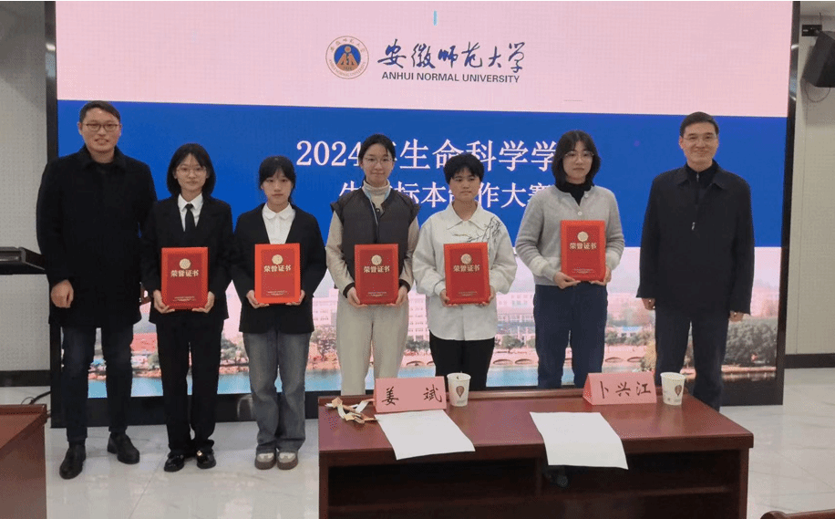 经过紧张的评选和统计,最终《安徽省翼手且食性与头骨和翼的关系》(动物组)、《薄荷香浓醉》(植物组)、《鸡因羽蕴-揭示幼鸡羽色伴性遗传的密码》(动物组)、《让每一次相遇成为守护,而非终结》(创意组)、《践行“七个强省”计划,展“皖美奋进”之姿》(创意组)共5件作品被推选参加安徽省生物标本制作大赛。
