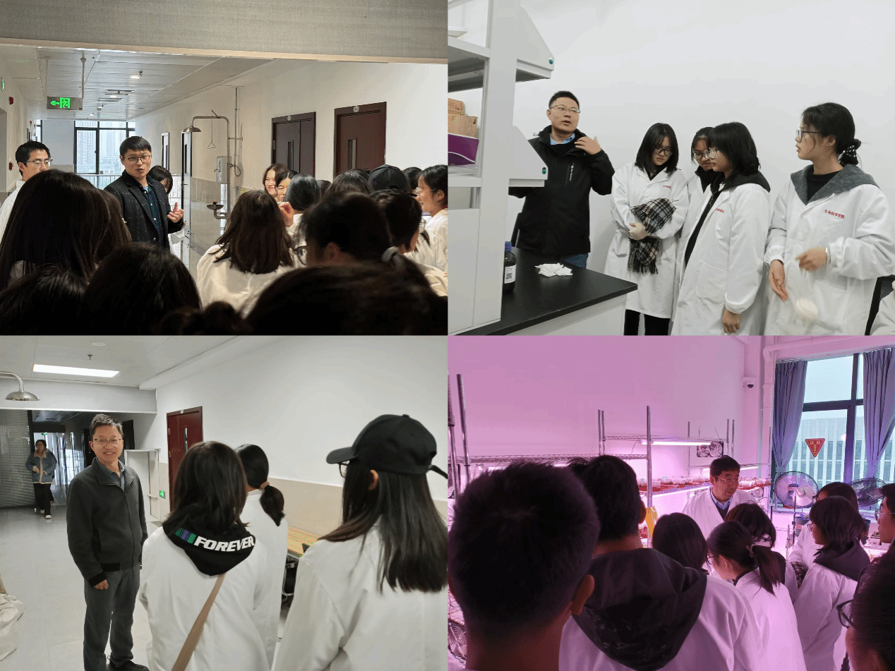 姜斌首先为同学们介绍了公司的“本科-硕士-博士-博士后”多层次培养体系,并详细介绍了公司的硕士学位授权点、科研平台和科研团队的基本情况。之后,带领同学们依次参观了清源楼7楼至11楼的科研实验室。参观过程中,公司本科生导师潘涛、邵剑文、阚显照、杨璐、刘洪明、汪昌保、储谟立、谭小娟和聂瑞娥等为同学们详细介绍了各自实验室的仪器设备以及团队开展课题研究的情况,并鼓励同学们打好专业基础、积极争取到实验室开展科研训练。同学们对实验动物、植物和各种标本都充满了兴趣。期间,老师们也针对同学们的提问耐心的一一回答。