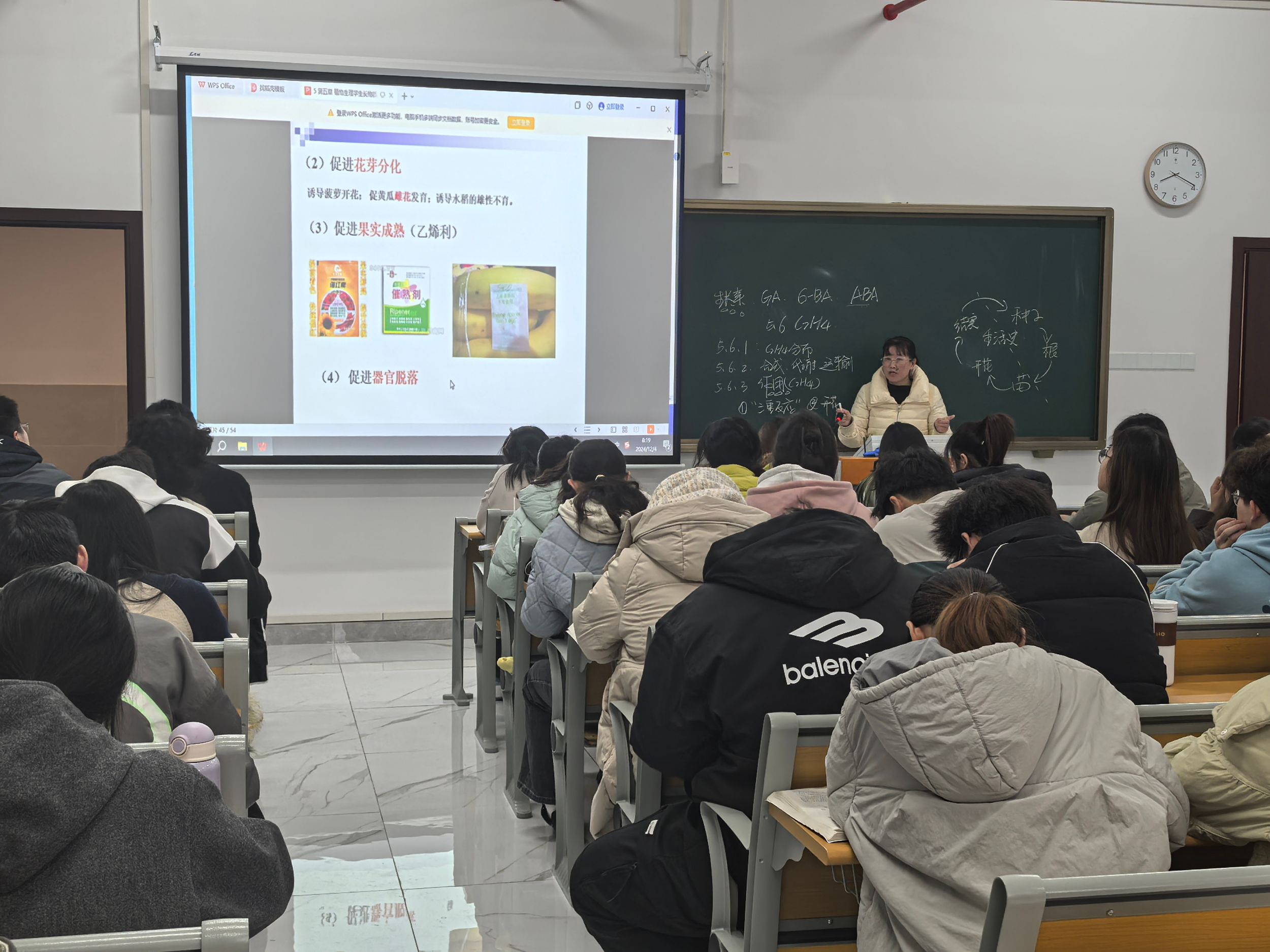 本节公开课的授课内容为“植物的激素——乙烯”。在新课开始前,张老师简单回顾了已经学过的四大类植物激素,并通过科学家发现黑暗中豌豆幼苗的三重反应现象导入新课。在讲课中,张老师结合大量的生活实例,循循善诱,使员工深刻理解乙烯的主要生理作用,并引导员工思考在这些生理学理论知识的基础上,如何合理开展生产应用。同时,张老师结合板书的知识框架帮助员工厘清五大类植物激素在植物的各器官、各生活阶段承担的此消彼长的生理作用。整个讲课深入浅出,循序渐进,知识点融会贯通。在讲解乙烯的发现过程中,张老师还适时融入课程思政,引导员工透过现象看本质。
