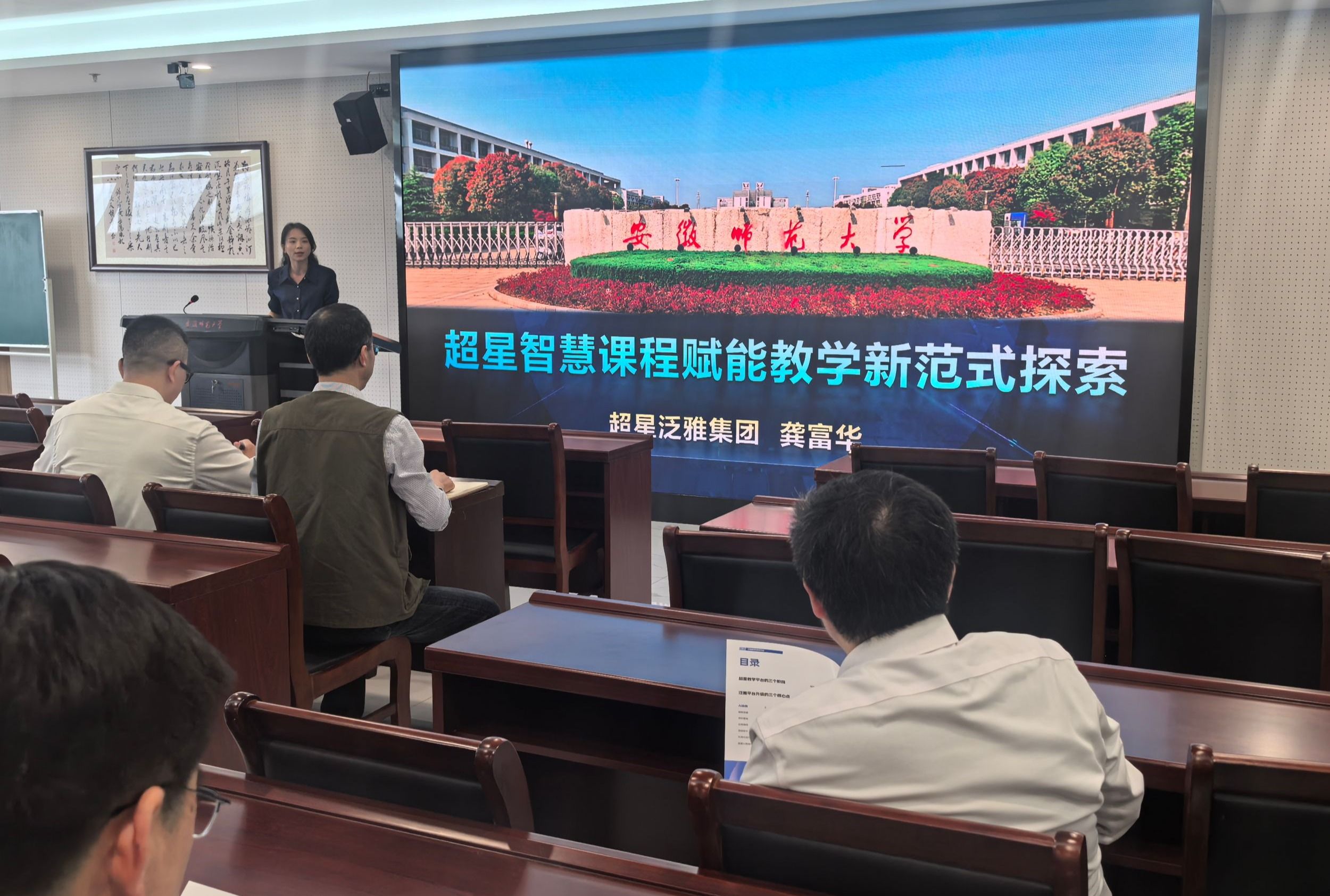 超星泛雅集团安徽分公司副总经理龚富华以“图谱为基,AI赋能:人工智能背景下超星智慧教学平台助力AI课程建设”为题作专题讲座,她重点介绍了基于图谱的四维教学体系构建、AI助教系统的开发与应用、教学评价智能化解决方案等三大创新应用。