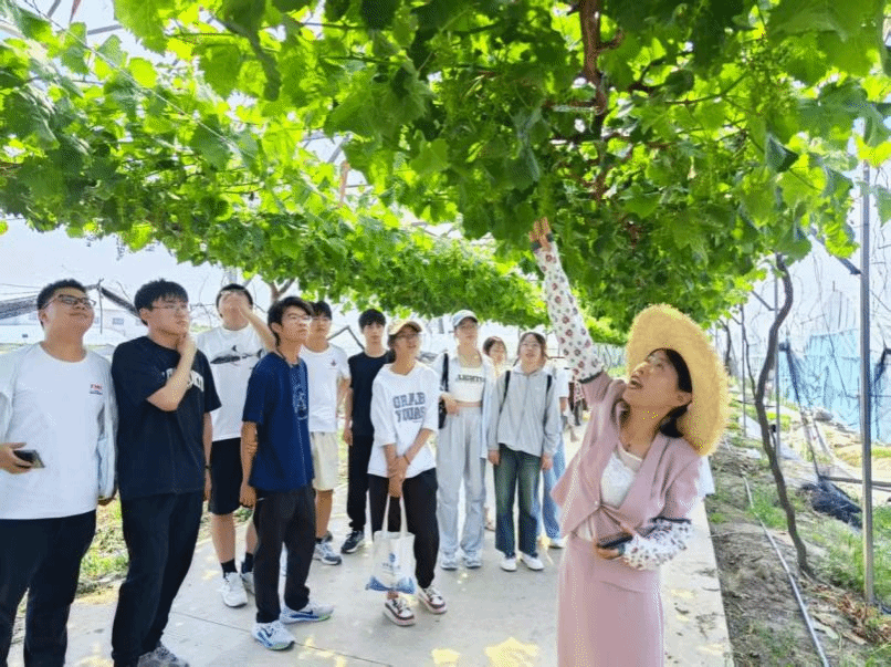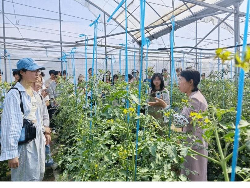 在种植基地内,企业负责人刘仕妹向师生展示了豆角、葡萄、圣女果等农作物的实际生长状态。针对葡萄种植,讲解了枝条修剪对果实品质的影响,现场演示如何判断枝条留芽数量。观察圣女果时,强调了温室温度控制对果实成熟的重要作用。在豆角种植区,介绍了搭架栽培对提高产量的必要性。