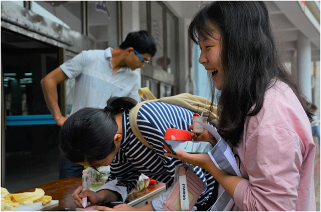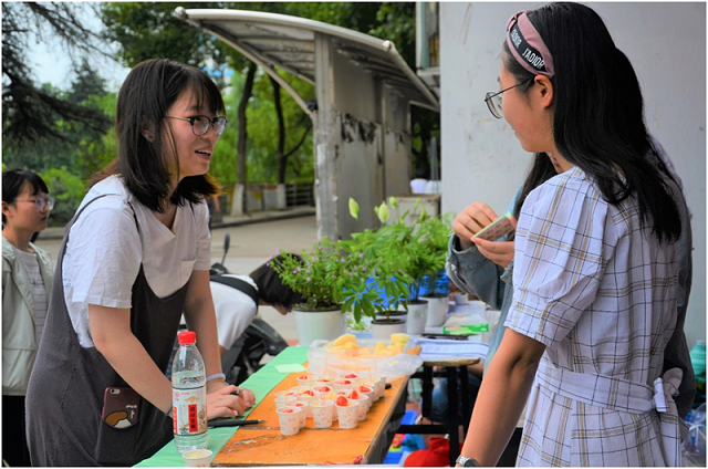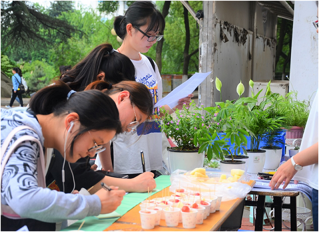 图5 “同学,送你一份我们自己培育的有机瓜果!”参加植物宣言书写的同学