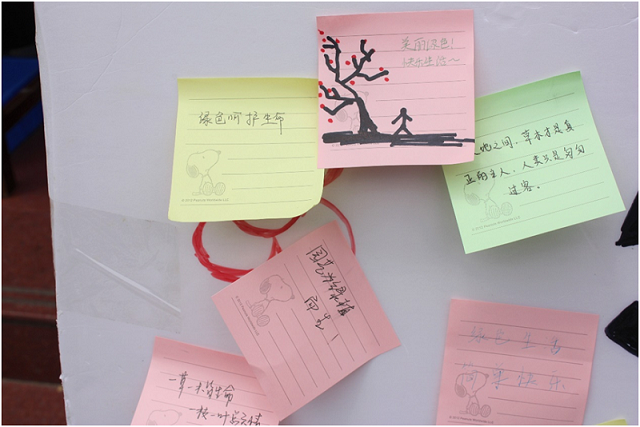 图4 同学们积极参与到 “书写你的植物宣言” 活动中,纷纷拿笔写下了自己