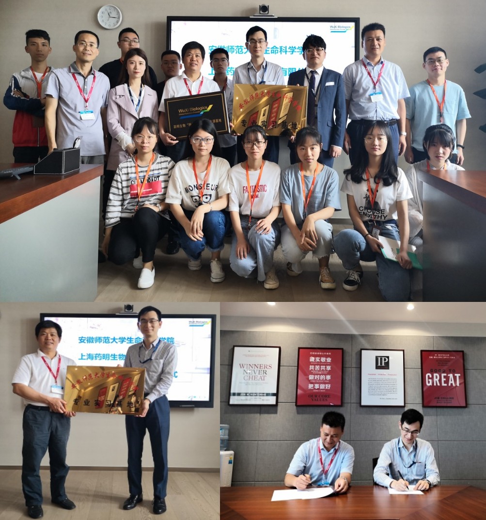 为了进一步做好员工实习工作,充分调研并了解员工实习情况,加强对实习生工作的指导和管理。2019年7月5日,公司党委书记蒋学波带队前往上海药明生物技术有限公司看望2016级生物制药专业实习同学,检查员工实习情况,并与上海药明生物技术有限公司签署了校企实习协议。公司副经理胡好远教授,生物制药专业负责人陈冬生教授陪同前往。