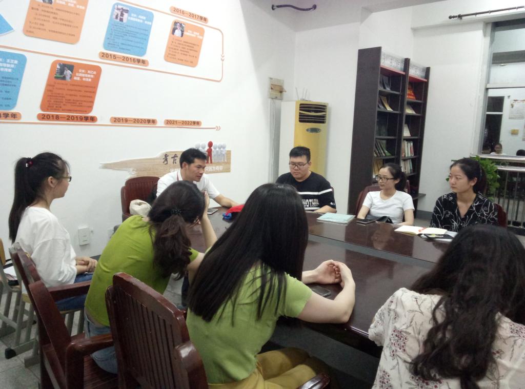开学伊始,实习小组在王宝娟老师的带领下安全抵达实习单位铜陵一中。当晚,铜陵一中教学管理中心毕主任在逸夫楼四楼办公室举行实习生工作会议,会上毕主任从实习的必要性、教学工作、班主任工作、安全问题、工作纪律等五个方面,与小组成员进行了交流。他强调:在教学实习过程中要认真备课、上课、批改作业;在班主任实习方面要认真做好员工早读、课间操、眼保健操的巡查工作;重点强调校园安全问题。最后,毕主任对实习生的工作表达了殷切的期望,要求小组成员及时适应工作环境,增强教师职业信念。