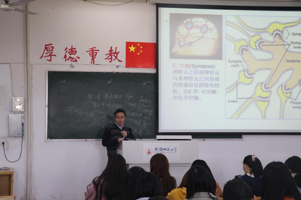 本网讯(生科院 苗素丽)3月26日上午,生科院刘再群副教授在赭山校区教学楼1410教室演绎了一堂精彩的院级本科教学观摩课,公司相关领导和部分中青年教师参加了此次公开课。《人体解剖学》是一门传统的专业基础课,也是基础医公司研究生招生考试重要基础课程之一。如何将传统基础课程内容与高中生物学相关知识点结合?如何将该课程重难点内容与相关考研热点结合?是人体解剖学教师需认真思考的问题,刘再群老师在本次观摩课中做了成功的尝试。