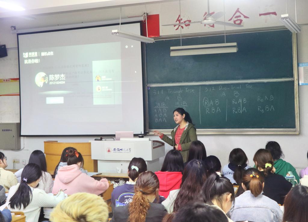 本网讯(生科院 汪昌保)4月22日上午,生科院严帆讲师在赭山校区田家炳8306教室开展了一堂精彩的院级本科教学观摩课,公司相关领导和部分中青年教师参加了此次公开课。《食品感官评价》是“食品质量与安全”与“食品科学与工程”两个专业共同的一门选修课(限选课),主要阐述食品检测与品质控制的基础理论,为培养员工的专业实践技能奠定基础。本次教学活动中,严帆老师成功尝试了“雨课堂”新型智慧教学工具。