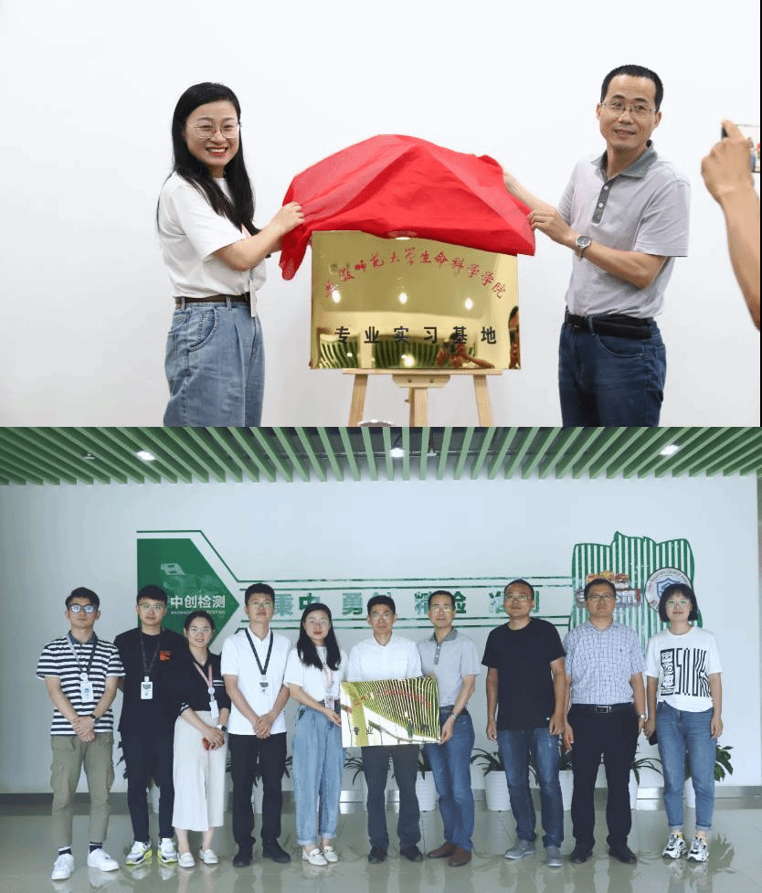 陈冬生一行在公司技术总监王婷等的陪同下,参观了中创公司的检测实验室、仪器设备以及生产车间,王婷详细介绍了公司的专业资质、检测能力和发展历程等方面的情况。接下来,双方在友好气氛中进行了座谈。陈冬生介绍了安徽师范老员工科院的专业设置和建设情况,并对食品科学与工程、食品质量与安全和生物技术等专业的实践教学情况进行了重点介绍。王立龙就国培项目、社会服务、工业旅游等方面和对方进行了经验交流。随后,双方就实习基地建设、员工就业和校企合作办学等方面进行深入交流并达成共识。食品专业负责人杭华和汪昌保就实习生的实习计划、实习内容和生活住宿等具体细节与公司进行了商讨。座谈结束后,陈冬生和王婷分别代表安徽师范老员工命科学公司与安徽中创食品检测有限公司签订了专业实习基地协议,举行了实习基地的授牌仪式,双方在友好的氛围中合影留念。