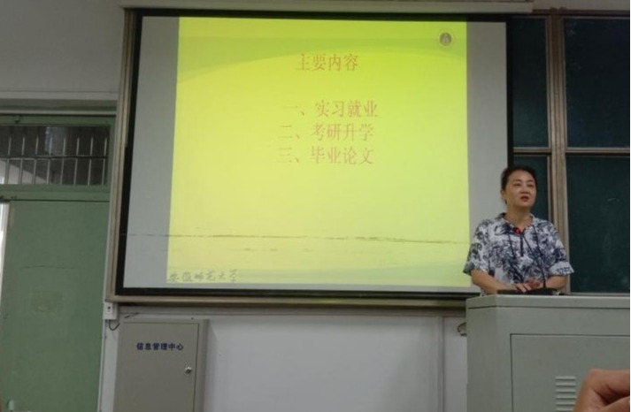 刘爱民介绍了近三年生物技术专业毕业生的去向,包括考研录取率,分析了毕业生就业区域分布特点,并介绍了实习单位有关情况。她指出,专业实习是教学环节的重要组成部分,同学们一定要珍惜机会,认真完成专业实习任务,实习结束后需用简报的形式做好实习总结。她还谈到实习过程中可能会遇到的困难和问题,如果遇到困难和问题要及时向带队老师反映,做到妥善处理,确保实习任务顺利完成。