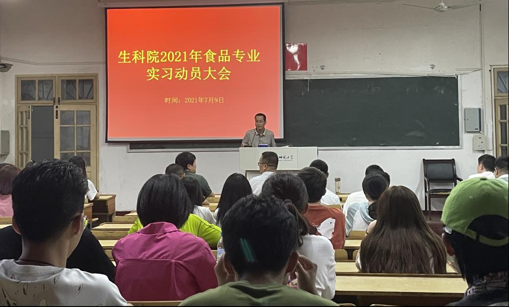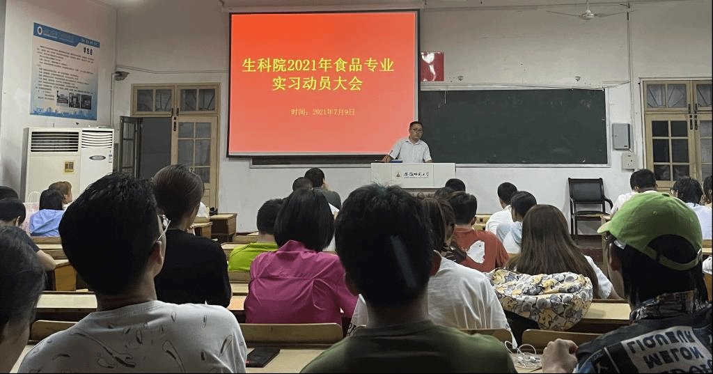 本网讯(生科院 黄道帅 赵航)7月9日,生科院2021年食品专业实习动员大会在教学楼1401举行。公司副经理陈冬生、食品科学与工程专业负责人杭华、食品质量与安全(专升本)专业负责人汪昌保、专业实习指导老师孟祥勇、严帆、李明会、程轶群、鲁山、孙柯等出席动员会,会议由辅导员赵航主持。