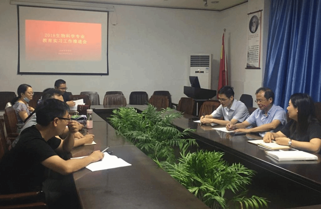 本网讯(生科院 韩菲) 9月24日下午,生物科学专业在生化楼后二楼会议室召开了2018级生物科学(师范)专业教育实习工作推进会。专业负责人杨安娜老师主持会议,涂传林、卜兴江、李晓红、王宝娟、韩菲、杨璐、曹正宇、张亚、何峰等多位实习指导老师出席。