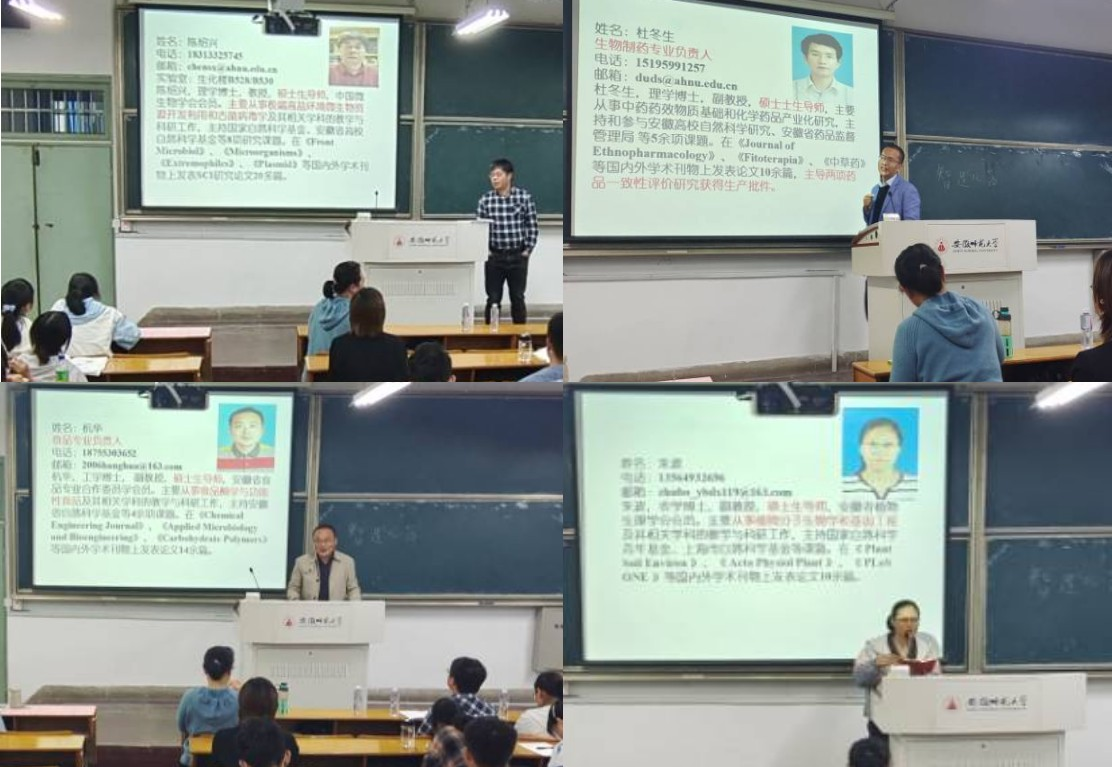 随后,专业教师陈绍兴、杜冬生、杭华、朱波依次发言。陈绍兴以诙谐幽默的语气教导同学们不能随波逐流,正确理解成功的含义,低调做事;杜冬生详细介绍生物技术领域在生物医药领域的应用,强调本专业应具备雄厚扎实的理论知识,同时用“心”做事,“智造心药”;杭华表示,当今社会紧缺“技术型”人才,希望同学们把握机遇,科研无止境;朱波强调,当代老员工应戒掉“依赖”,把握青春好时光,不负韶华。整个会场掌声不断,其乐融融。