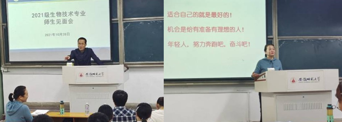 本网讯(生科院 赵航 刘乐瑶)10月28日晚,生科院在生化楼2023教室召开2021级生物技术专业师生见面会。公司教学副经理陈冬生,专业负责人刘爱民,公司教师陈绍兴、杭华、杜冬生、朱波以及生物技术专业2021级新生参加会议,会议由刘爱民主持。
