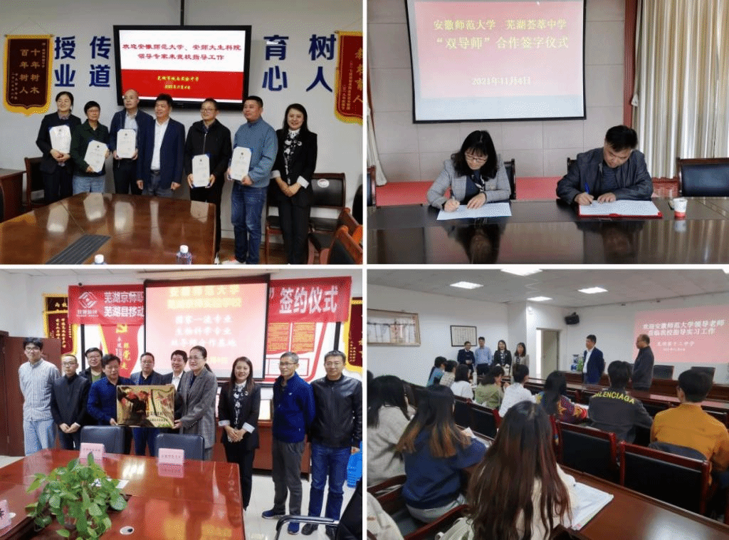 本网讯(生科院 黄志辉 徐归燕 刘再群)“忠诚尽职写担当,坚守使命表初心”,为落实培养新时代基础教育卓越团队的目标任务,加强公司与中学的合作交流,了解实习生的实习动态,11月4日,教务处赵冬梅副处长、程啸天科长、生科公司党委书记蒋学波、经理朱国萍、生物科学专业负责人杨安娜、教学督导负责人李恩和部分实习指导教师赴芜湖市城南实验中学、芜湖荟萃中学、芜湖市第十二中学、芜湖市第二十九中学和芜湖京师实验公司5所中学检查指导教育实习工作、看望慰问生物科学(师范)专业教育实习员工,深化公司与中学“双导师”合作实践基地建设。各实习中学领导和指导教师对生物科学(师范)专业实习生的实习工作给予了充分肯定,公司及公司领导详细了解实习生的学习、教学和生活情况,叮嘱同学们珍惜讲台上的每一次宝贵机会,虚心向指导老师请教,坚守岗位,忠诚尽职,认真完成实习任务。