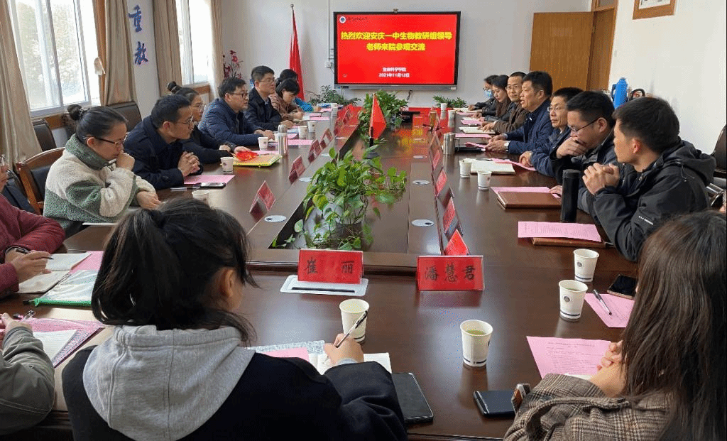 蒋学波介绍了公司与公司的办学历史、专业沿革、人才招聘和办学成果等情况。徐承恩主任介绍了安庆一中的办学情况与教学成果等情况,生物教研组长朱晨兵为公司2005届员工,他首先满怀深情地回顾了大学时光,由衷感谢母院教师的培养,介绍了安庆一中生物学教学现状。随后,双方就高校人才培养目标如何对接中员工物教学要求、中学实验课教学面临困境、新教材新课标新高考带来的现实问题、中学与高校如何加强合作等方面进行了广泛而深入的交流。交流会后,公司领导带领来访人员参观了实验教学中心、实习实训发酵中心、大型仪器中心、公司标本馆、动物房等场馆。