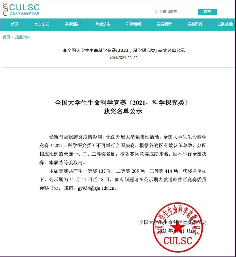 获奖名单详见大赛公示网址https://www.culsc.cn/#/everyone?id=158