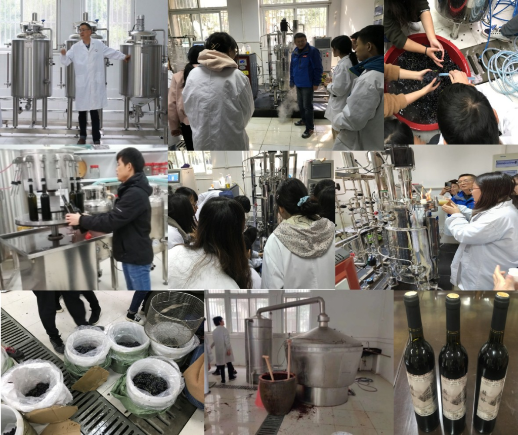 同学们在汪建中和卢存龙老师的指导下了解和掌握红葡萄酒的发酵原理及其酿造工艺,熟悉发酵罐(生物反应器)的基本结构和原理,学会操作50L自控机械搅拌发酵罐的安装、拆卸、操作程序,学习了用发酵罐大规模培养食用菌液体种的方法,学会发酵罐的接种和取样等基本技能。