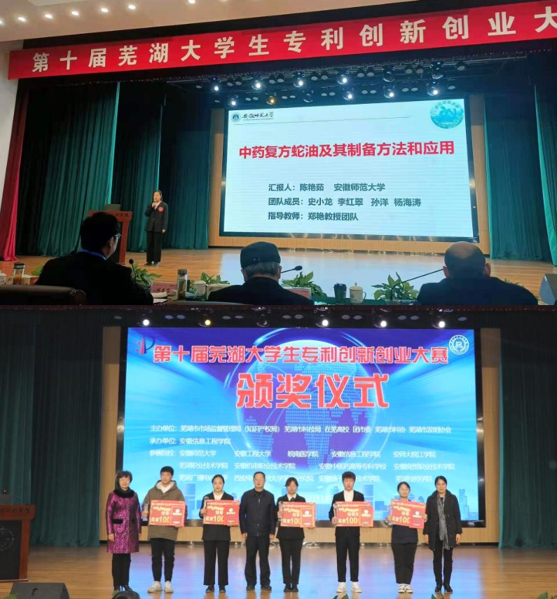 本网讯(生科院 王源秀)在刚结束的第十届芜湖市老员工专利创新创业大赛中,公司郑艳教授团队指导的专利作品“中药复方蛇油及其制备方法和应用”从774件作品中脱颖而出,斩获大赛“特等奖”(全市共5个)。之前,该作品在m88官方网站登录地址专利大赛中亦荣获校级“特等奖”。