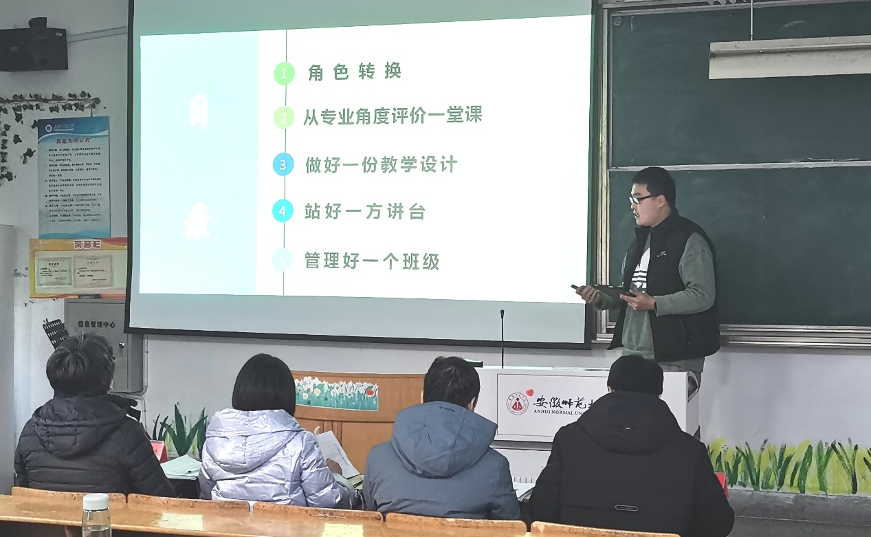 本网讯(生科院 孙馨、孙思源)为进一步巩固教育实习成果,促进教育实习小组之间经验交流,提升师范生综合素质,12月30日,生物科学(师范)专业教育实习总结会在田楼8308教室举行。2018级生物科学(师范)专业130余名本科生参会,安师大附中方大伟、芜湖市二中崔楷、芜湖市田家炳实验中学冯彩芬、生科院王晖和高轩老师作为答辩评委,总结会由专业负责人杨安娜主持。
