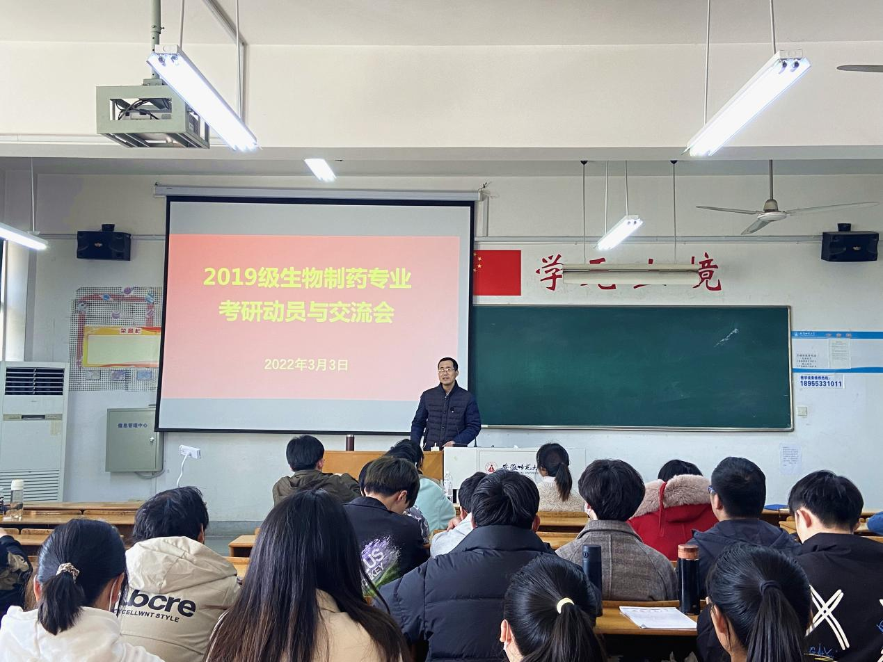 本网讯(生科院 汪士琪 孙凡)为增强2019级本科生员工考研积极性,3月3日下午2019级生物制药专业考研动员与交流会在田楼8309召开。会议由专业负责人陈冬生老师主讲,辅导员孙凡主持。