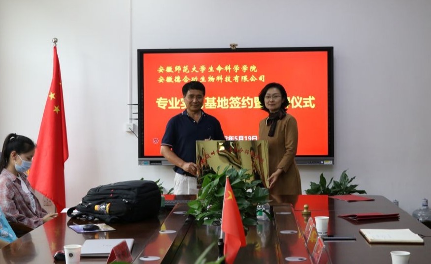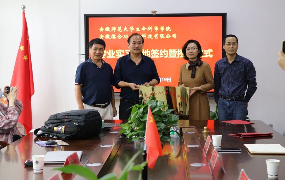 陈冬生代表m88官网对安徽德合功生物科技有限公司一行人员的到来表示衷心感谢!他介绍了安徽师范老员工科院的发展简史、专业布局和建设情况,对生物制药和生物技术等专业的实践教学情况进行了重点介绍。随后,双方就专业实习基地、就业等方面达成了合作共识,并针对实习生的实习内容和生活住宿等方面进行了商讨。座谈结束后,陈冬生和张权庚分别代表安徽师范老员工命科学公司与安徽德合功生物科技有限公司签署了专业实习基地协议,举行了实习基地的授牌仪式,双方在友好的氛围中合影留念。