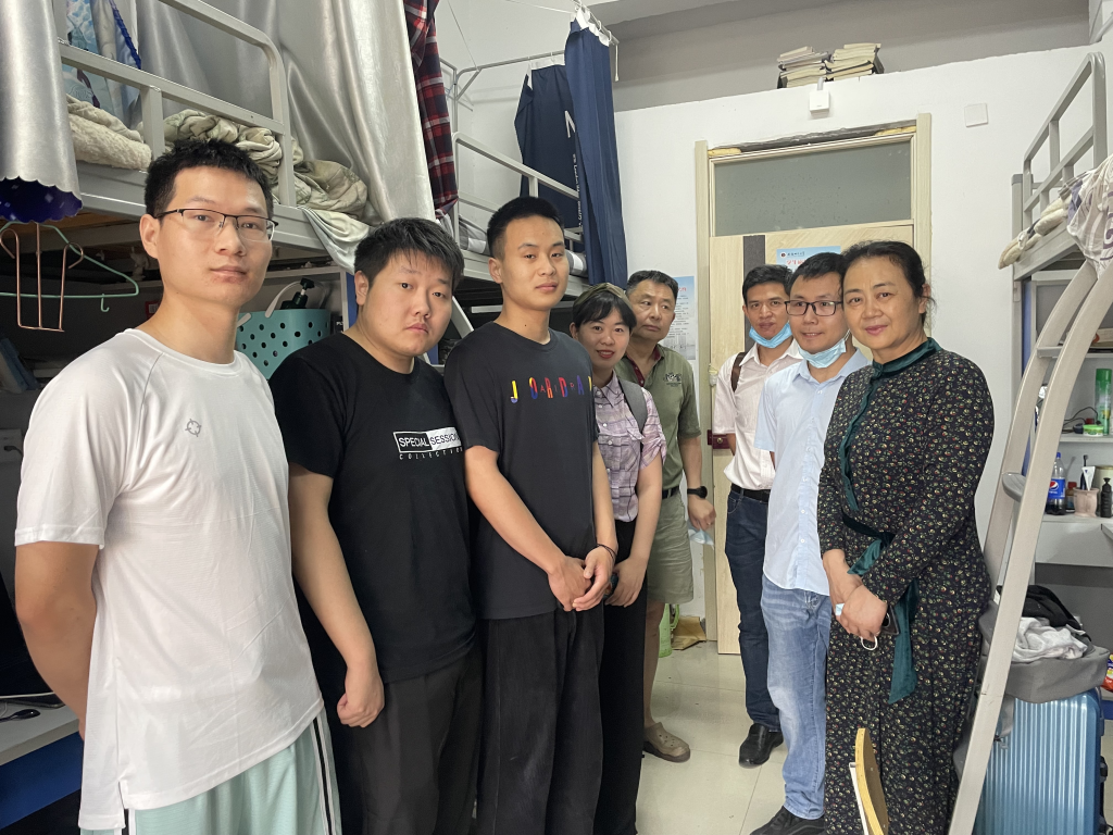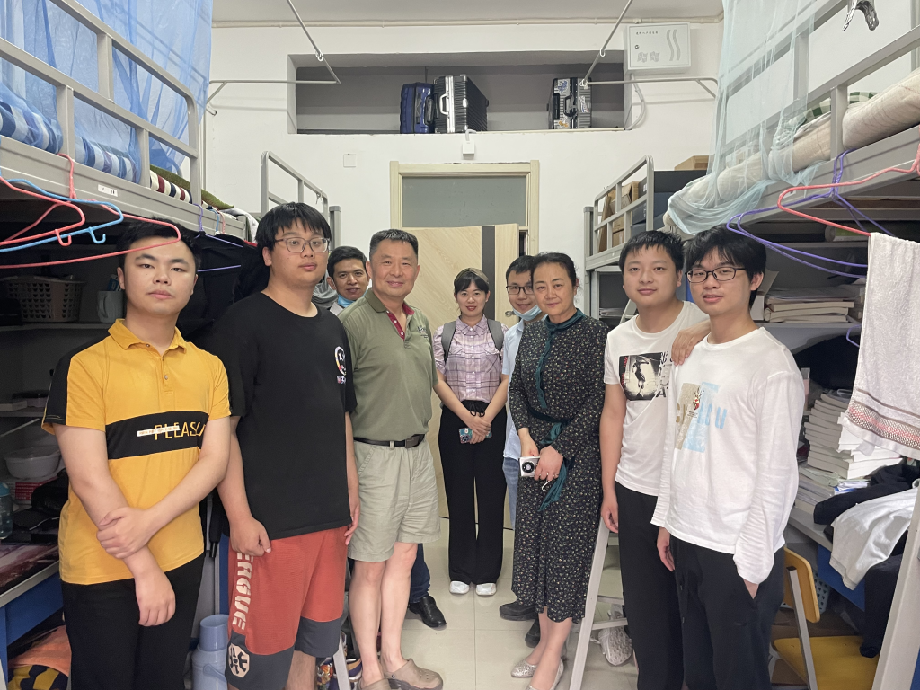 本网讯(生科院 王旭)在2022届毕业生即将离校之际,为进一步做好毕业生的教育、管理和服务,确保员工有序离校与平安到家,表达对毕业生的祝福与期望,2022年6月1日下午,生物技术专业负责人刘爱民、专业拔尖班负责人王旭、《免疫学》教师许岳慷、《植物学》教师朱先灿、《基因工程》课程教师李明会,辅导员黄颖等一同走访2022届生物技术专业毕业生宿舍,给他们送去关怀与祝福。