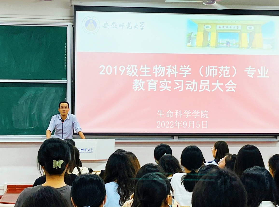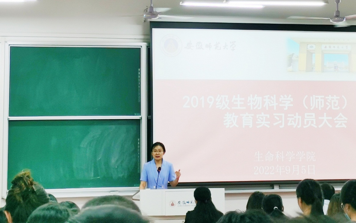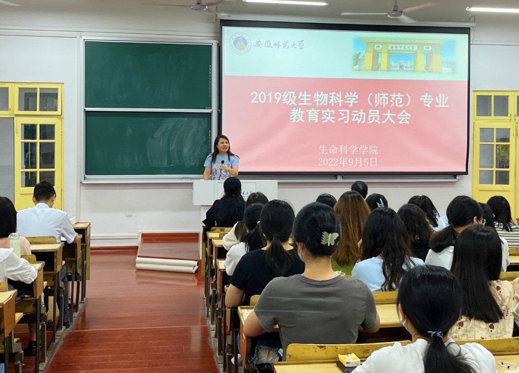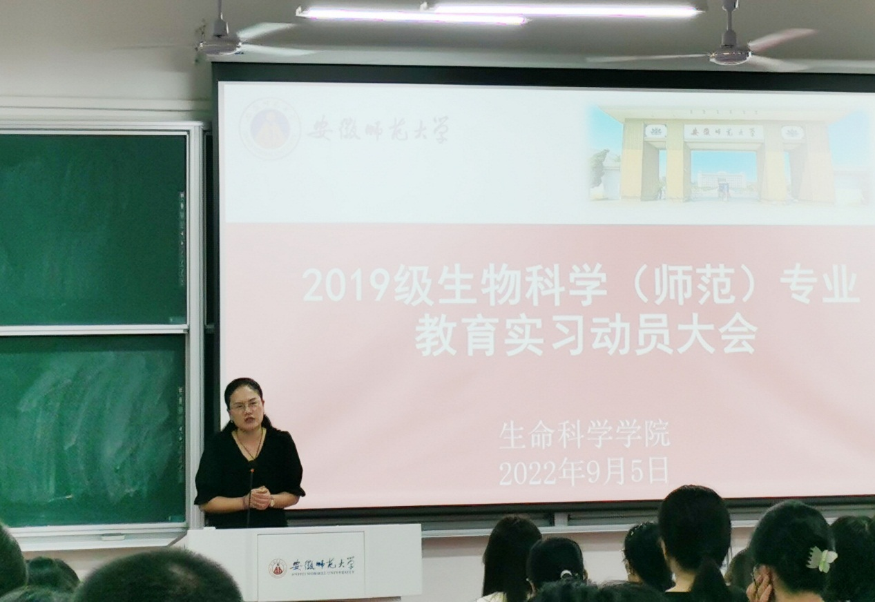 本网讯(生科院 徐建橼)为切实加强生物科学专业师范生的教学技能培养,更好地开展师范专业教育实习工作,引导师范生进一步明确实习内容和要求, 9月5日,m88官网召开2019级生物科学(师范)专业教育实习动员大会。经理朱国萍、副经理陈冬生、党委副书记汪倩倩、生物科学专业负责人杨安娜、校内指导教师代表卜兴江、辅导员胡玮及2019级生物科学专业全体本科生参会。会议由专业负责人杨安娜主持。