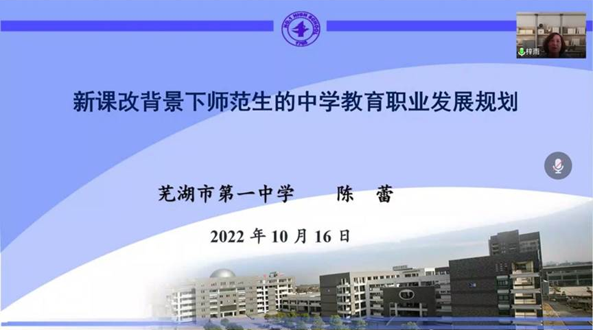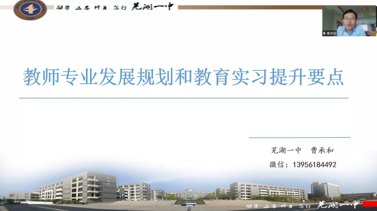 本网讯(生科院 汪晨曦 徐璐琳)为引领师范生成长,强化专业技能,指导师范生做好职业与专业发展规划,m88官网于10月16日特别邀请到芜湖市第一中学陈蕾和曹承和两位一线教学名师,围绕中学教师职业/专业发展规划及教育实习等主题,为师范生开展线上讲座。教学副经理陈冬生、生物科学专业负责人杨安娜、2019级生物科学(师范)专业全体同学及部分教师出席本次讲座,讲座由陈冬生主持。
