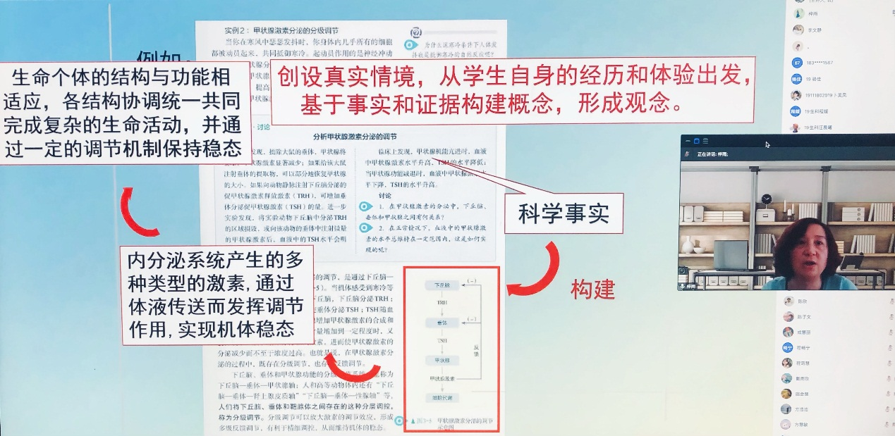 陈蕾是芜湖市第一中学正高级教师,芜湖市名师工作室主持人、芜湖市中员工物学学科教研大组指导组成员,曾荣获“全国模范教师”和“安徽省特级教师”等称号。陈老师的报告题目为《新课改背景下师范生的中学教育职业发展规划》,主要从“当今中国基础教育为何变革?”、“近十年中国基础教育发生了哪些变化?”、“师范生如何尽快胜任中员工物教学工作?”三个问题出发,首先指出我国基础教育的现存问题,强调新时代教师应更加关注员工的批判性思维和创新能力的培养。接着着重分析了高考命题的一系列变化,明确了国家在基础教育发展的改革方向。最后从“自我认知”和“自我突破”两个角度点明中学教育的职业发展对师范生的具体要求,师范生要做到多研习、多观摩、多实践和多反思。