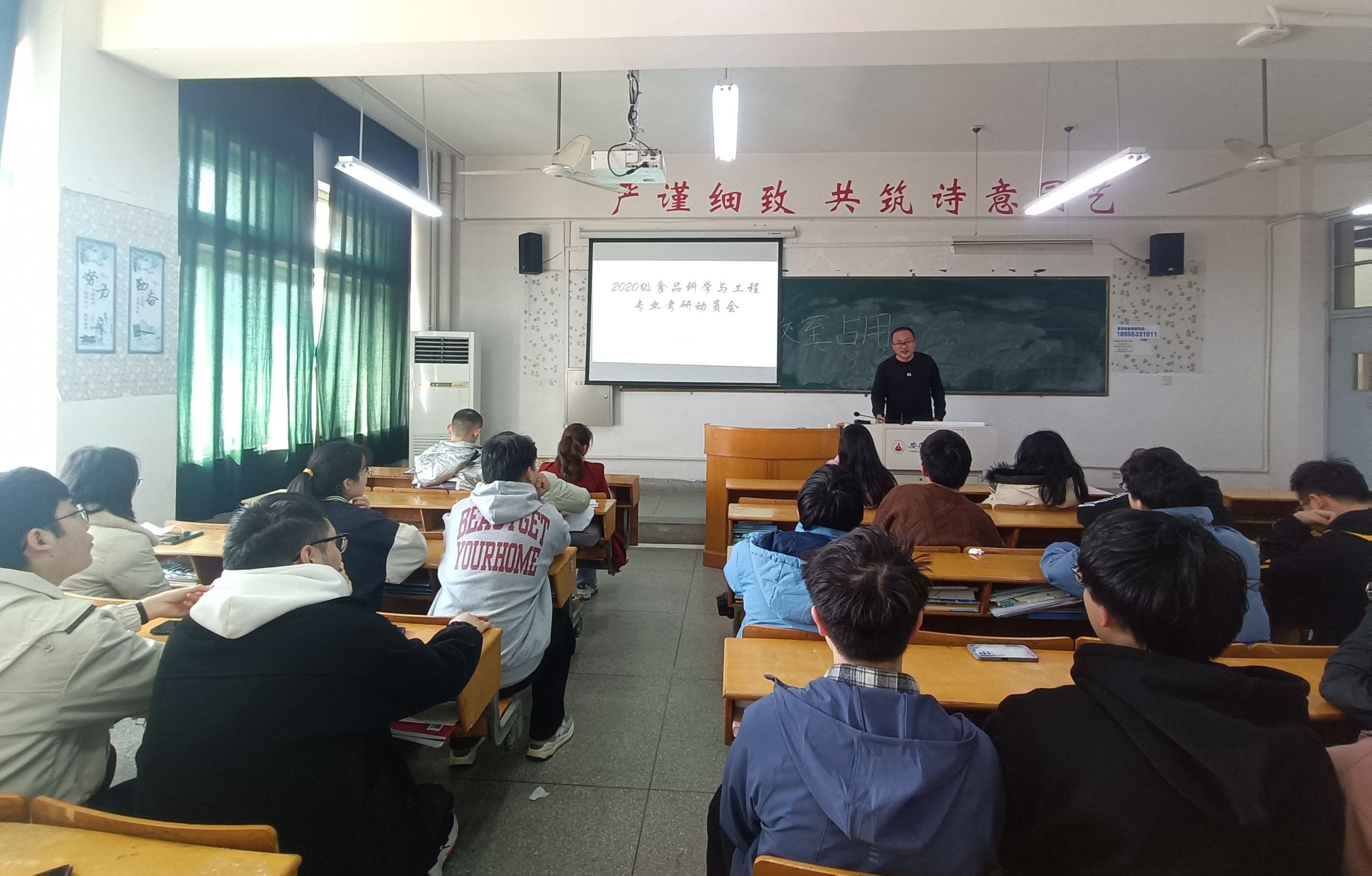 本网讯(生科院 李舒)为激发考研学子的斗志,解答同学们关于考研的疑惑,正确把握考研形式及相关政策,2020级食品科学与工程专业于2023年3月2日下午在田楼8307教室召开了考研动员大会,本次班会由专业负责人杭华主持。