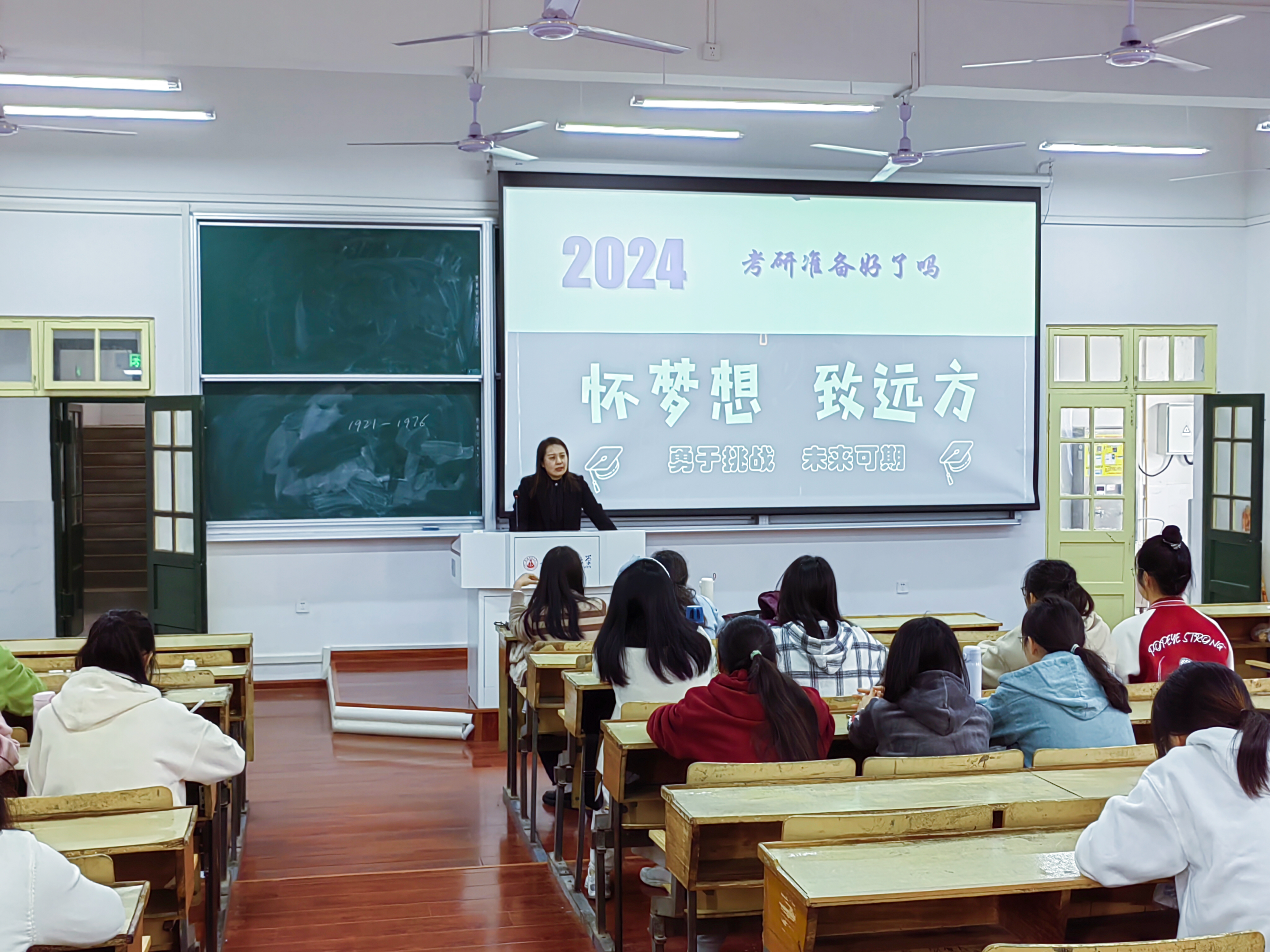 本网讯(生科院 汪文岚)为激发大三学子考研热情,坚定考研信心,明确考研目标,2020级生物科学专业于3月8日下午在教学楼1410召开以“怀梦想 致远方”为主题的考研动员大会。本次会议由专业负责人杨安娜副教授主持,2020级生物科学专业全体同学参加。