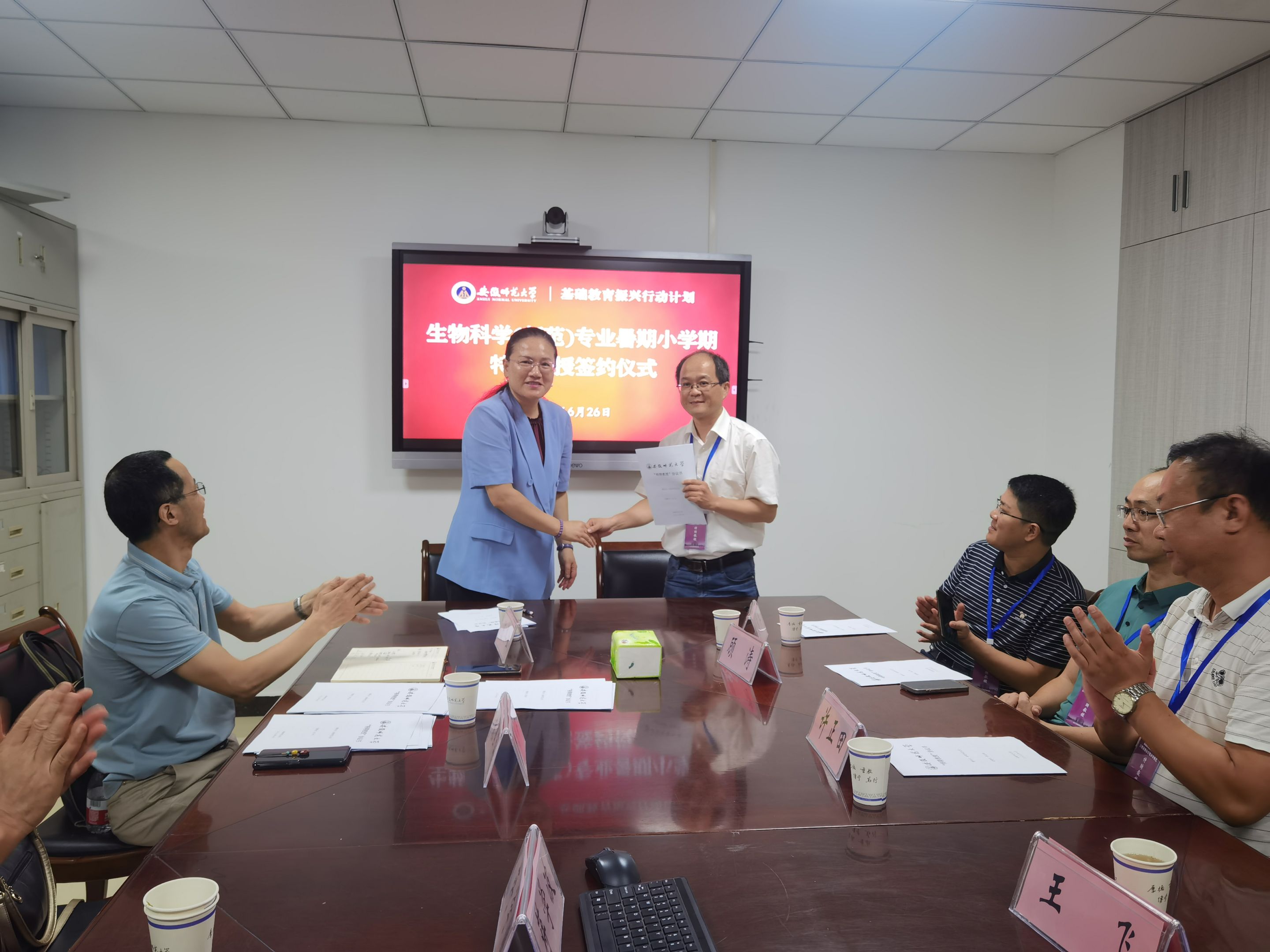 6月26日上午9点,公司在花津校区实习实训中心报告厅隆重举行安徽师范大学基础教育振兴行动计划2023年暑期小学期开学典礼暨特聘教授聘任仪式。生物学科特聘教授在校花津校区实习实训中心报告厅接受了与会领导颁发的特聘教授聘书。