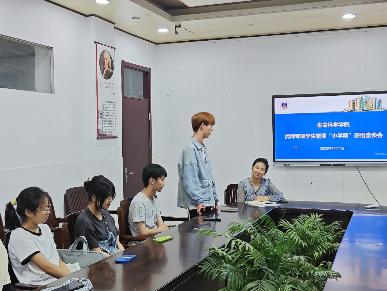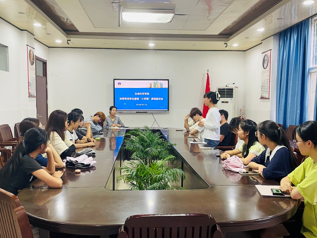 本网讯(生科院 周文娟)为深入了解暑期小学期开展以来师范生的学习情况,有效落实好暑期小学期后半段的各项工作,7月11日下午,2021级生物科学专业15位优师专项员工,齐聚生化楼公司会议室,交流本次暑期小学期的学习心得与感悟。座谈由辅导员周文娟主持。